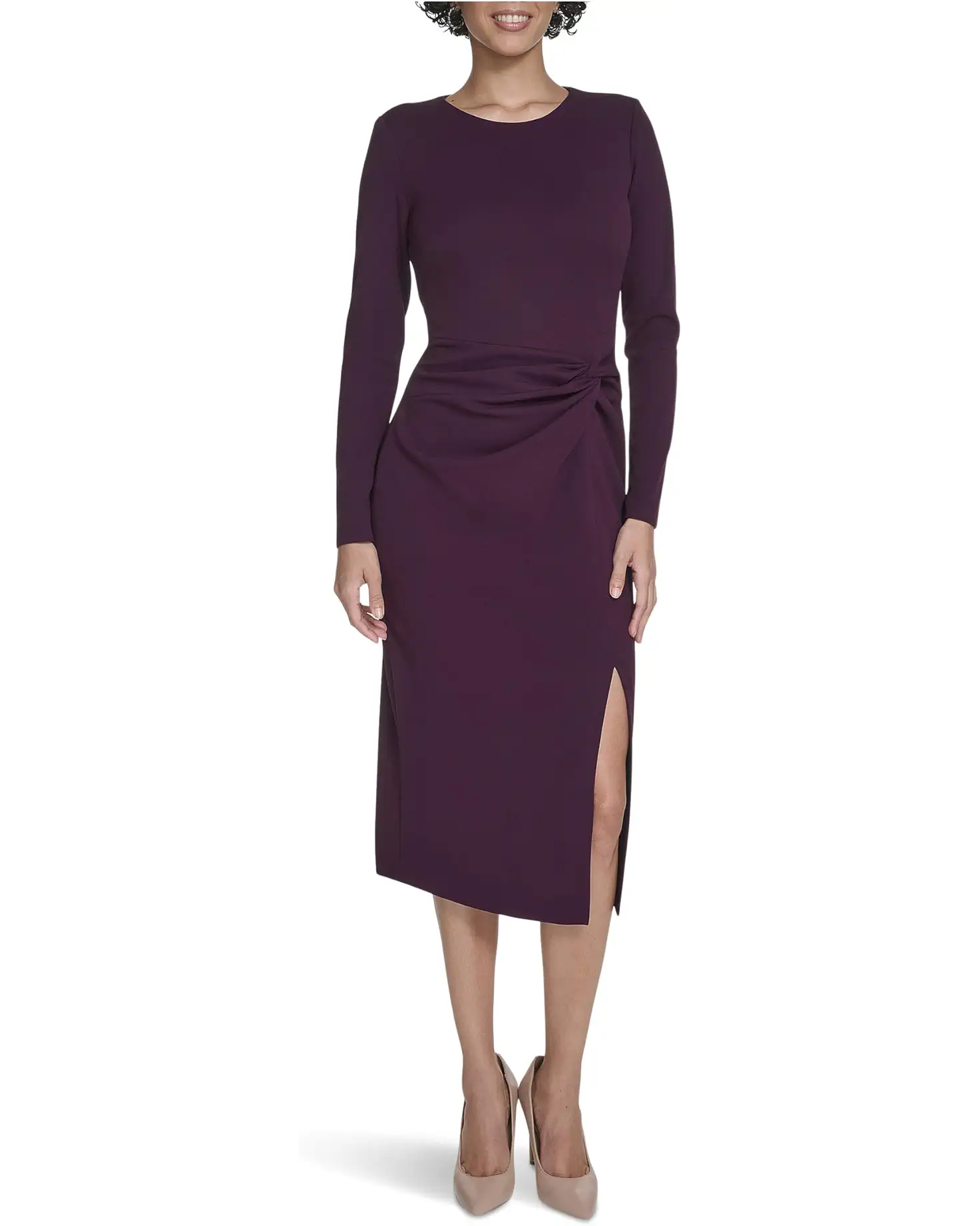 • Calvin Klein® Long Sleeve Solid Rouched Midi dress.