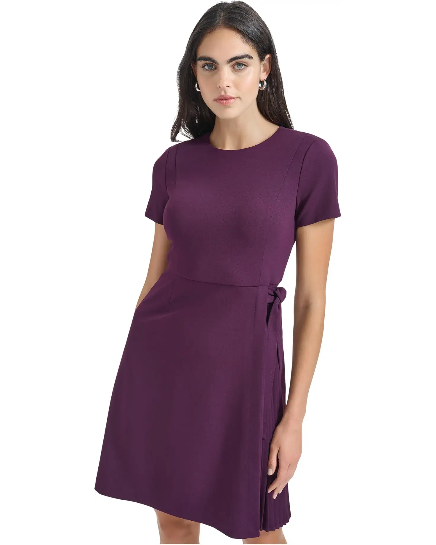 - Elevate your everyday chic wardrobe styling in the Calvin Klein® Short Sleeve Pleated Aline dress. Featuring a crew neckline with short sleeves, pleated detailing on the side, belt at waist, and an A-line silhouette.