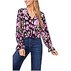 • The CeCe™ Floral Printed Button Front Long Sleeve Top is the perfect balance of playful and polished. The beautiful floral print, V-neckline, and the long sleeves with tie sleeve cuffs, make this button-front top perfect for any occasion!
