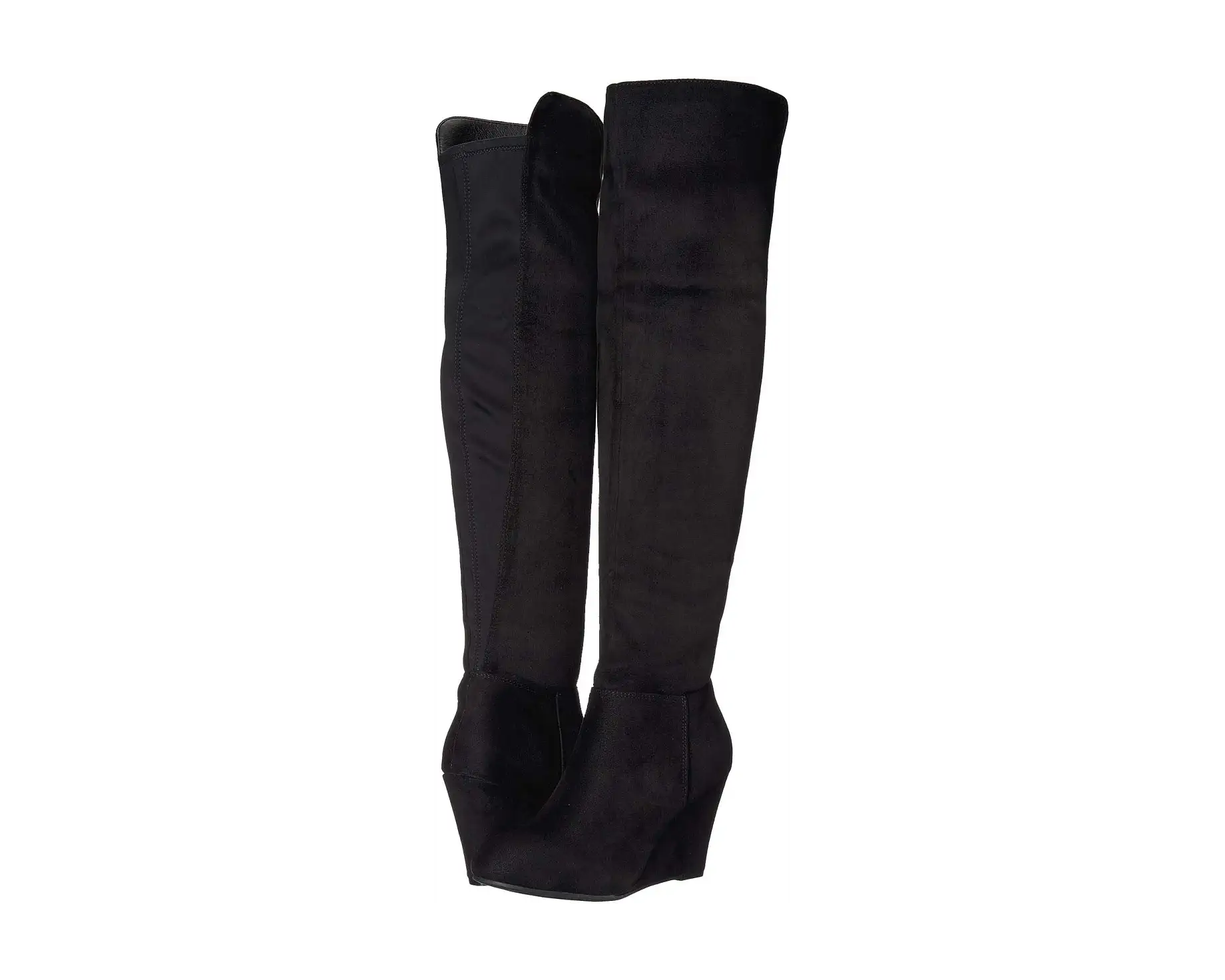 - Get edgy in the over-the-knee Chinese Laundry® Unforgettable boots featuring a synthetic suede upper on a wrapped wedge heel.