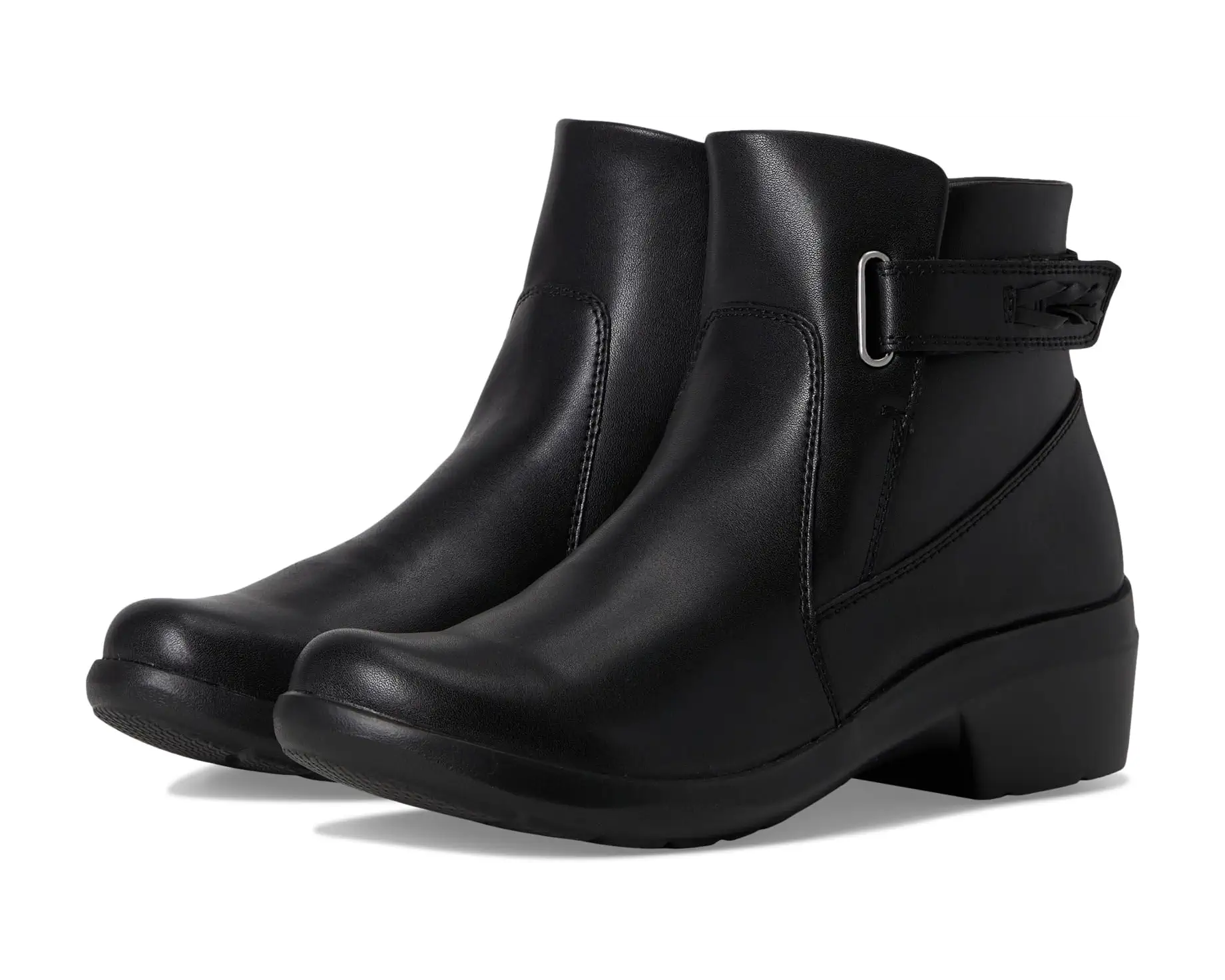 - The art of casual elegance, Clarks™ Angie Serena. This ankle-high boot is crafted with a premium leather upper that's sleek, versatile, and ready to complement all your off-duty looks this season. The side zipper closure makes slipping in and out a breeze, while the sturdy block heel adds just the right amount of lift without compromising comfort. Inside, the breathable mesh lining pairs perfectly with Clarks' Ultimate Comfort foam footbed to cushion every step, keeping you light on your feet from day to night. A lightweight, impact-absorbing EVA outsole and durable rubber grip ensure ease and stability, whether you're running errands, meeting friends, or exploring the city. With its closed-toe design and modern silhouette, Angie Serena is a wardrobe essential that balances style and function.