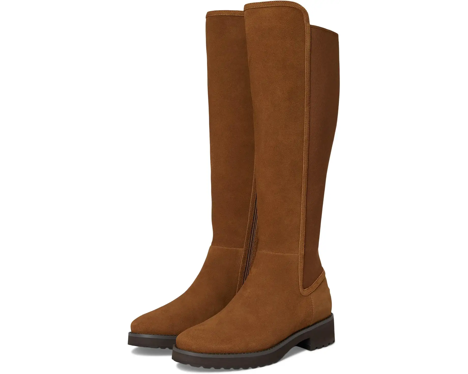 • The Cole Haan® Lyndon Waterproof Tall Equestrian Boots are a refined take on classic riding style. With a streamlined round toe silhouette, these boots are crafted from premium waterproof leather uppers. Inside, systematic layers of proprietary cushioning compounds provide plush comfort, softly padding each step for all-day wear. The full rubber outsole ensures reliable grip and traction across varied surfaces.