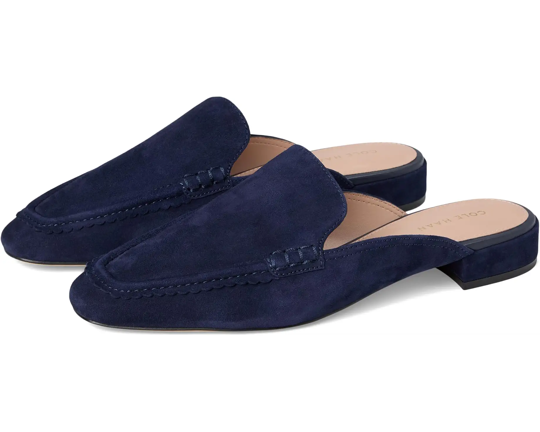- Cole Haan Craft and DNA is exemplified through meticulous upper burnishing, double-row stitch detailing, internal leather lining (upper and footbed), and the Cole Haan leather inlay in the midfoot bend. Move smoothly from heel to toe with less fatigue wearing the Cole Haan® Pollina Scalloped Mule Loafers. They are made from a leather upper, EVA insole, and textile lining. Their smart outsole design features a multi-directional flex pattern that mimics the foot's natural motion. Easy to slip on and off, these leather shoes work for different occasions.