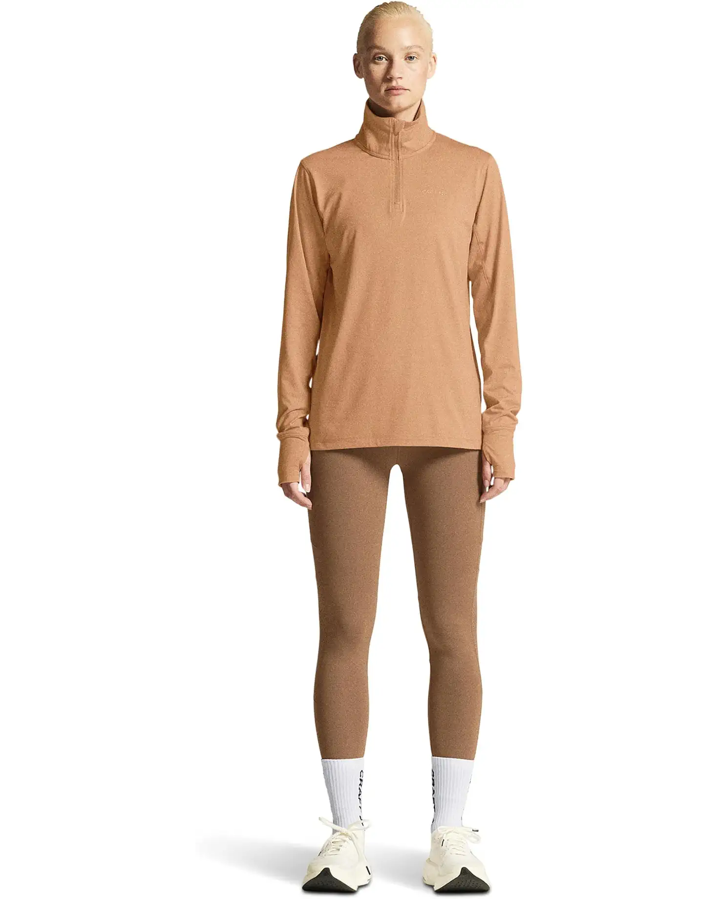 • Flow Half-Zip Long Sleeve for Women is a soft and functional half-zip jersey that excels as both a baselayer and a standalone garment for running, training, powerwalking and similar physical activities. This multi-purpose half-zip jersey is made from a functional blend of recycled polyester and elastane, with a subtly peached surface for a soft feel. The long-sleeve jersey also features a slightly more relaxed fit than traditional tight-fitting baselayers, enhancing versatility and adaptability. Wear it solo or layer under a jacket or mid-layer shirt for added insulation in colder conditions.