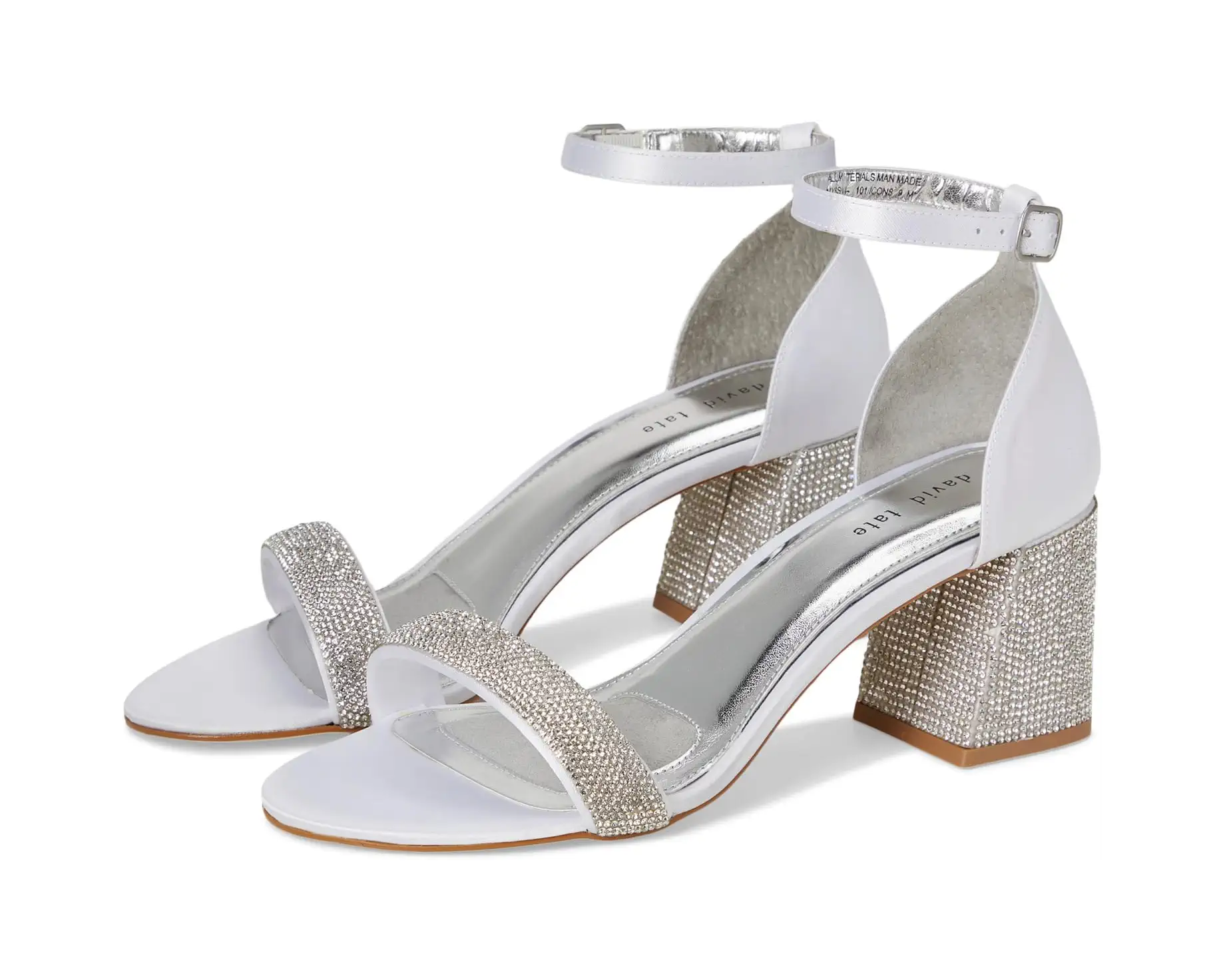 • A gorgeous and glamorous pick for your evening parties, the David Tate® Icon Heels showcase a premium quality satin upper perfectly teamed with shimmery rhinestone embellishments on the toe strap. Equipped with a feminine buckle strap closure at the ankle, the shoes look more stylish with the high quality sockliner made with satin, suede, and soft leather and surrounded by a metallic frame. The rhinestone-covered block heel lifts your look with some added charm.