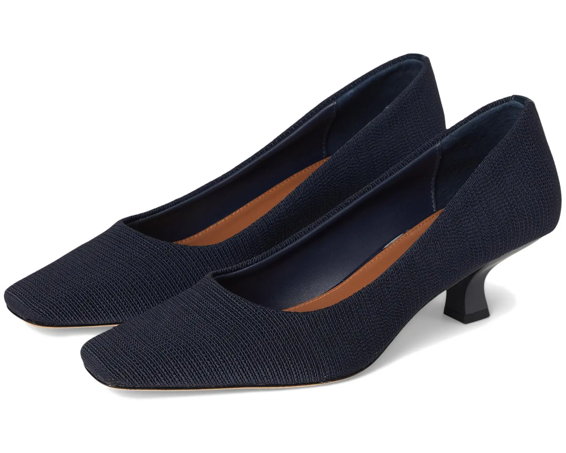 • Refined elegance meets modern comfort with the Donald Pliner® Cristine knit-textured kitten heel pumps. Designed for versatility, the sleek squared toe and sculpted low heel create a polished silhouette, making them the perfect choice for both office wear and evening outings. The breathable woven fabric upper ensures a snug yet flexible fit, while the cushioned leather insole adds extra comfort for all-day wear.