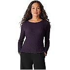 - The Eileen Fisher® Bubble Jacquard Round Neck Top is an intricate knit with substance and stretch. Crafted in a textural blend of soft cotton and recycled polyester-dress it up, dress it down. The pull-on style top features a round neckline, long sleeves, and lettuce-cut edges.