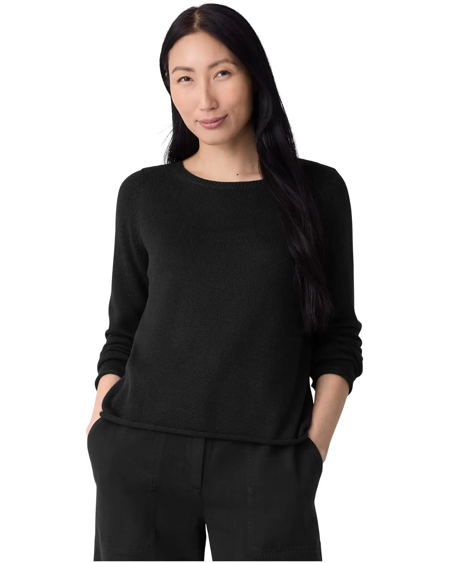 - The Eileen Fisher™ Peruvian Cotton Blend Bateau Neck Sweater is crafted from soft cotton spun with TENCEL™ Lyocell® for subtle sheen. Using cotton that's now grown using regenerative farming methods that support soil health and biodiversity. It has a bateau neckline, long sleeves, and a straight hem.