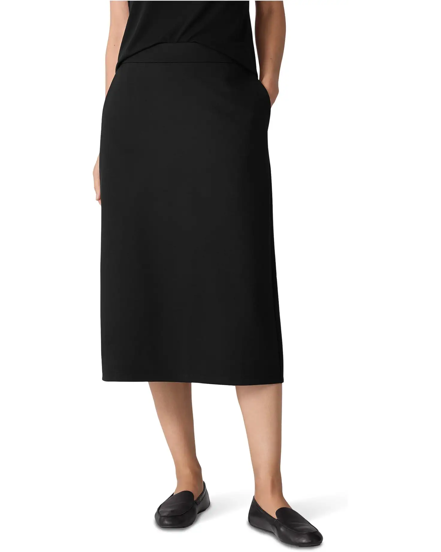 • The Eileen Fisher® Washable Flex Ponte Calf Length Skirt offers the sophistication of the brand's signature doubleknit, now with recycled nylon. This midi skirt is designed with a mid-rise waist and crafted from flex ponte fabric for all-day comfort and stretchability. Easy to pull on and off, this mid-rise skirt offers just the right amount of structure-and the right amount of stretch.