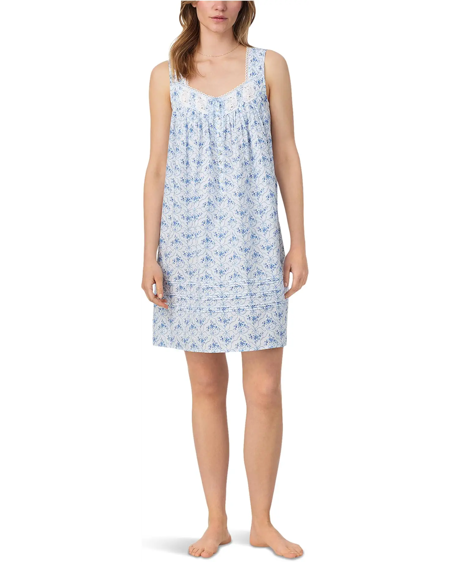 • Bring on the sweet dreams dressed fashionably in this Eileen West™ Cotton Woven Lawn Sleeveless Short Chemise.