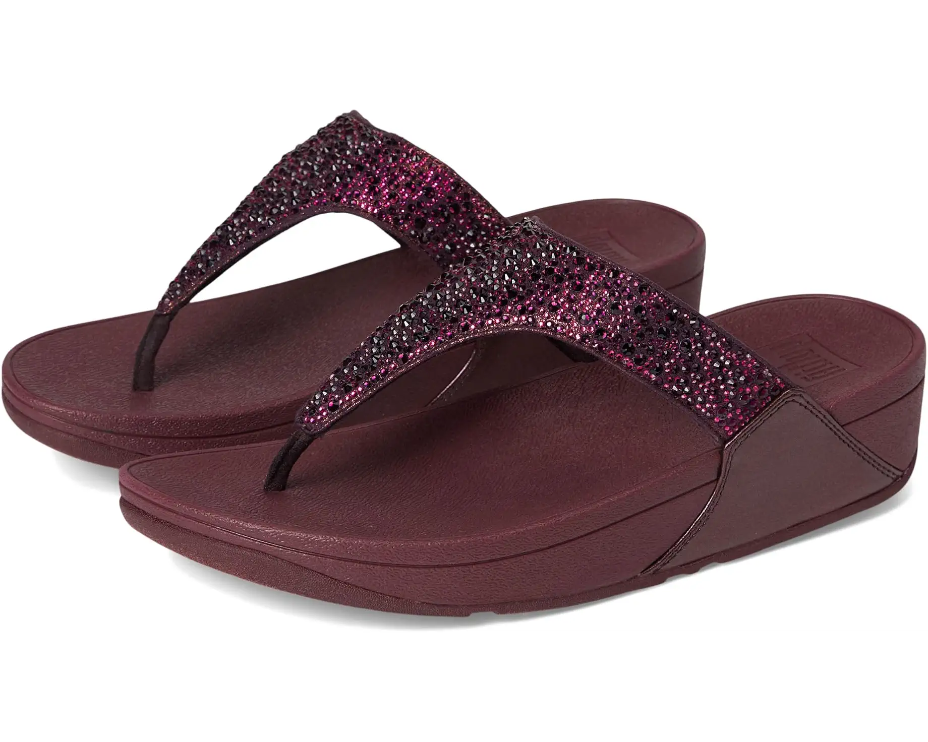- Bring a shimmery hint of modern allure to your look with the FitFlop™ Lulu Crystal-Mix Toe-Post Sandals. Featuring a microfibre lining and upper, these slip-ons offer a luxurious feel. The wedge heel and open almond toe add a chic flair, while the slip-resistant rubber outsole ensures stability with every step.