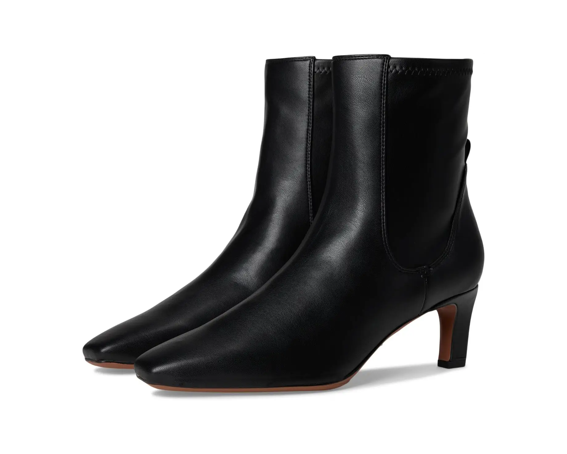 • The Franco Sarto® Tarrin booties are your go-to for a look that's both timelessly chic and unapologetically modern. Designed with a polished faux leather upper and ankle-high silhouette, these chic booties instantly refine any outfit. The square toe offers a fresh, fashion-forward detail, while the flare heel adds a touch of bold elegance, giving you the perfect balance of height and comfort. A convenient zippered side closure makes slipping in and out effortless, while the PU insole and synthetic rubber outsole provide all-day wearability.