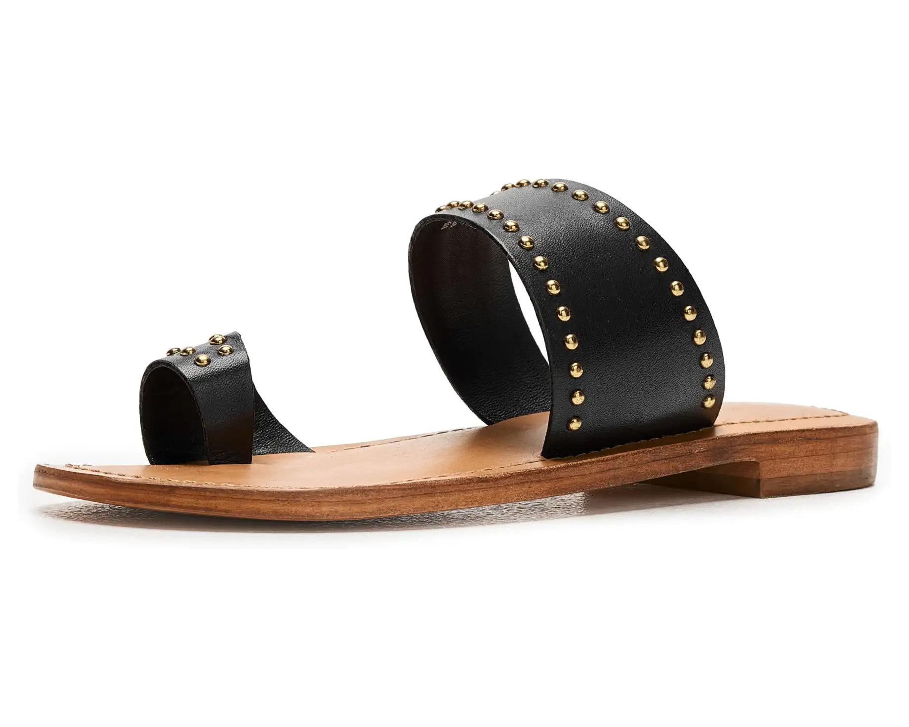• The Free People™ Amelie Tiny Stud Sandals feature studded straps and a toe loop, creating a sleek yet classic look. Designed for comfort and style, these slip-on sandals allow ease of wear while making a statement.