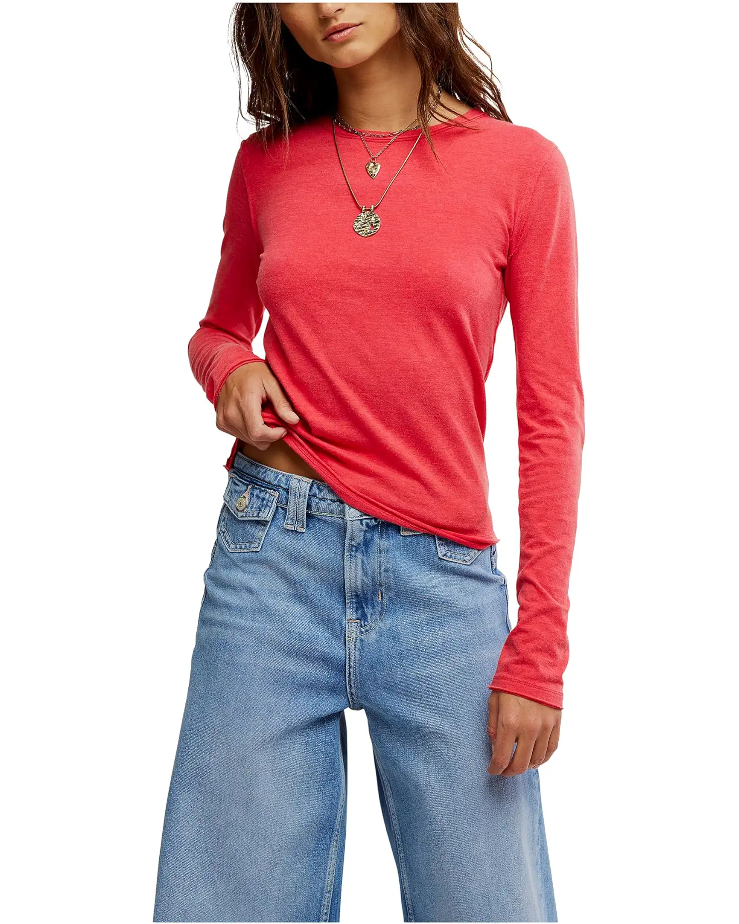 - Experience unmatchable comfort and walk in style wearing the Free People™ Nova Tee Long Sleeve Top. The pull-on style top features a crew neckline, long sleeves, and a straight hem with slight side slits.