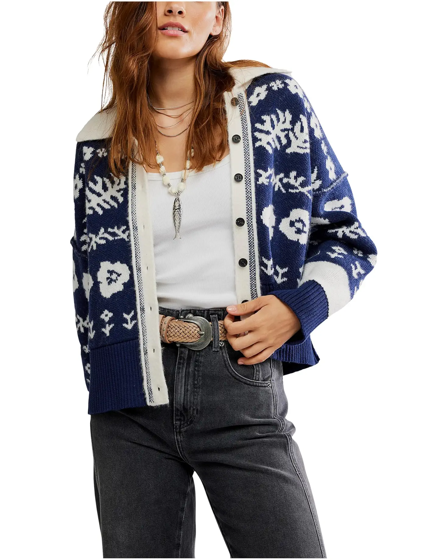 • Get cozy in this Free People™ Shelby Cardigan, made from a comfy cotton knit with a collared neckline and darling floral pattern. Its buttoned front closure offers easy on and off. It is styled with long sleeves, dropped shoulders, ribbed cuffs, and a ribbed hem. This button-down cardigan keeps you warm and feeling stylish all day.