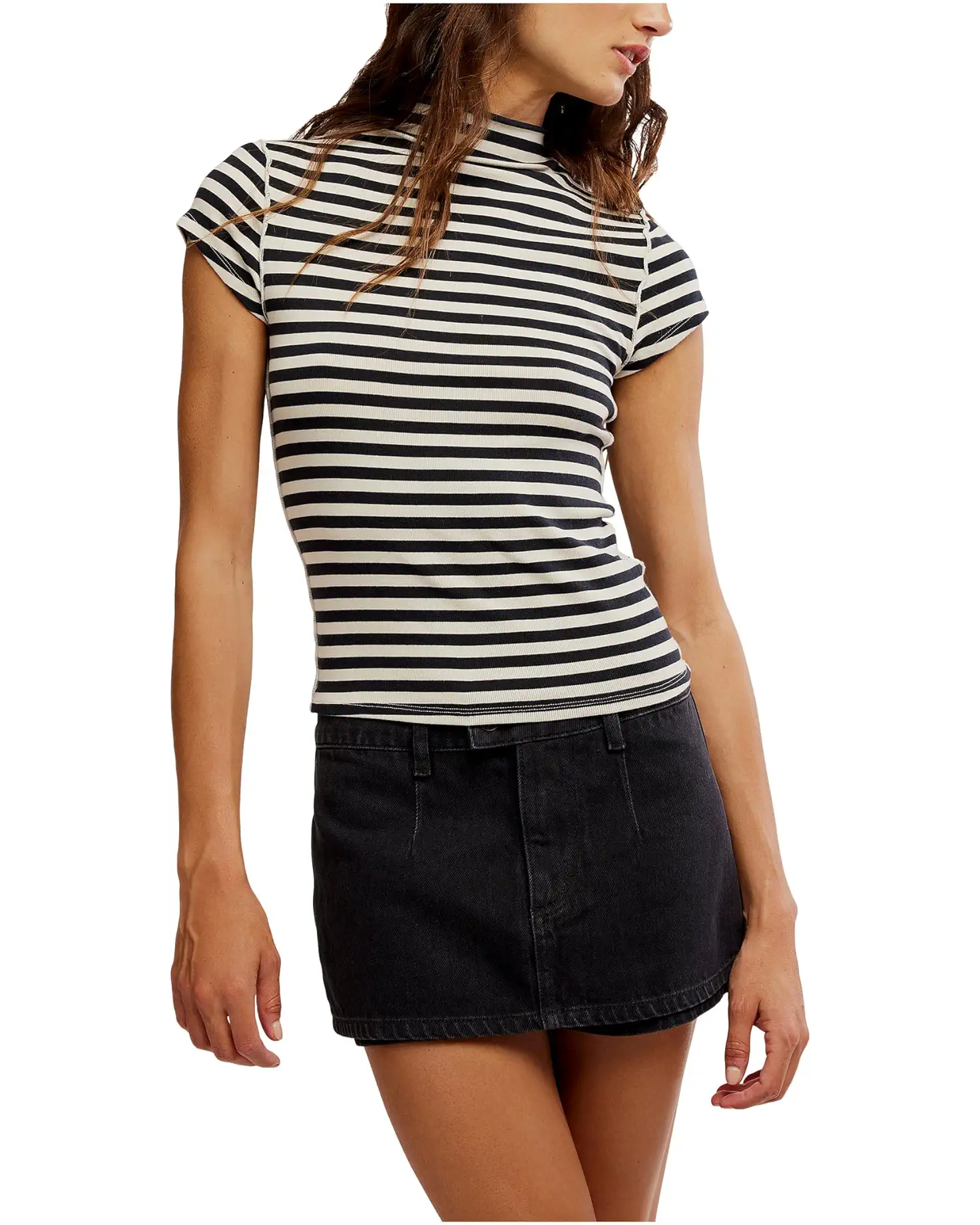 • A closet classic, now in stripe. Essential is an understatement when talking about this Free People™ We The Free Lola Striped Tee from We The Free, featuring a mock neckline and capped sleeves in the perfect cropped length for the ultimate outfit base. The striped tee has a ribbed cotton fabrication and signature exposed seams.