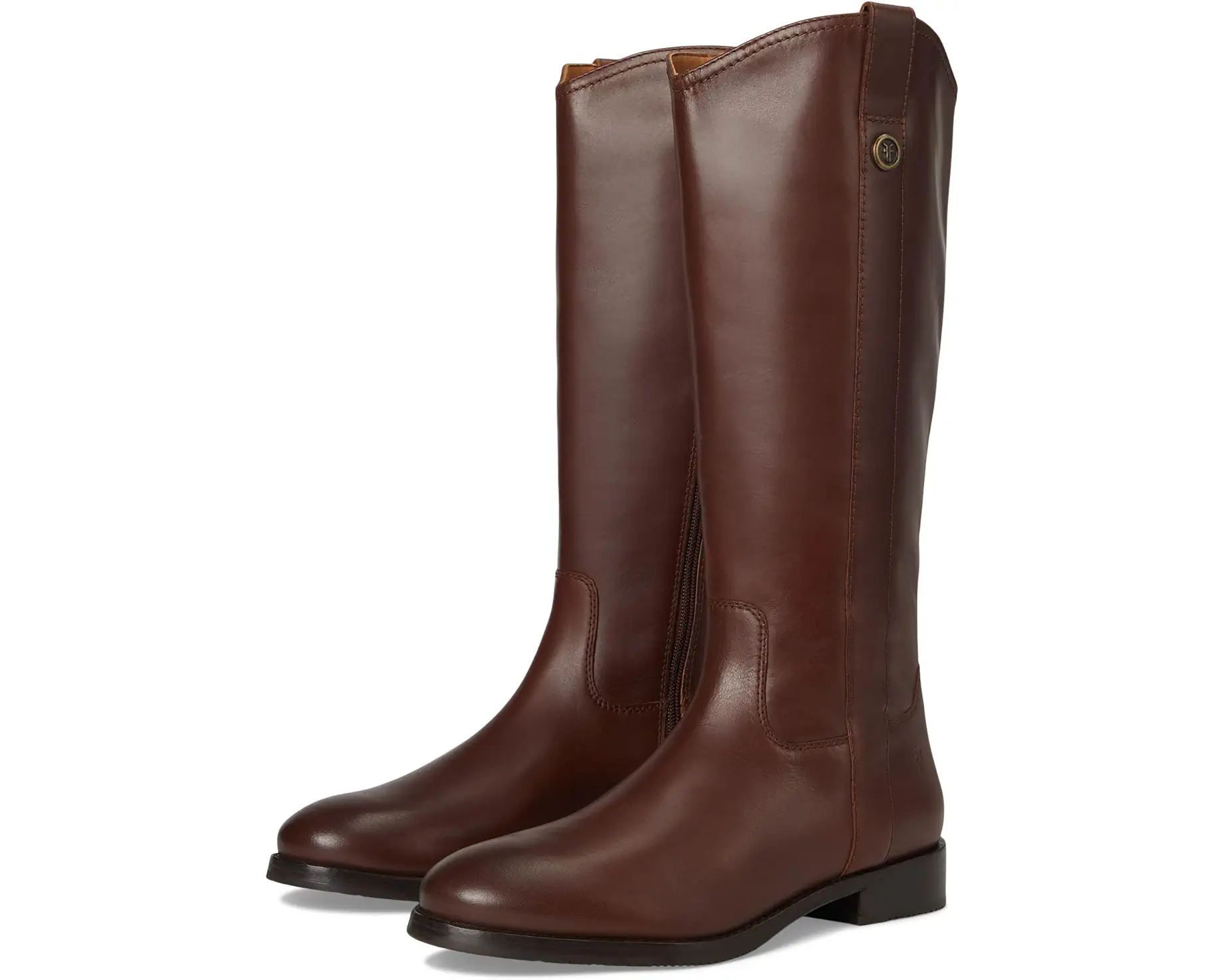 • Equestrian-inspired and built for lasting wear, this Frye® Melissa Button Tall Inside Zip tall riding boot combines style and practicality. Crafted from premium materials, it features a contoured fit with an inclusive wide calf design, cushioned insole, and chunky heel. A flexible rubber outsole and Frye's signature button detail complete the look. Perfect for pairing with jeans or layered fall outfits.