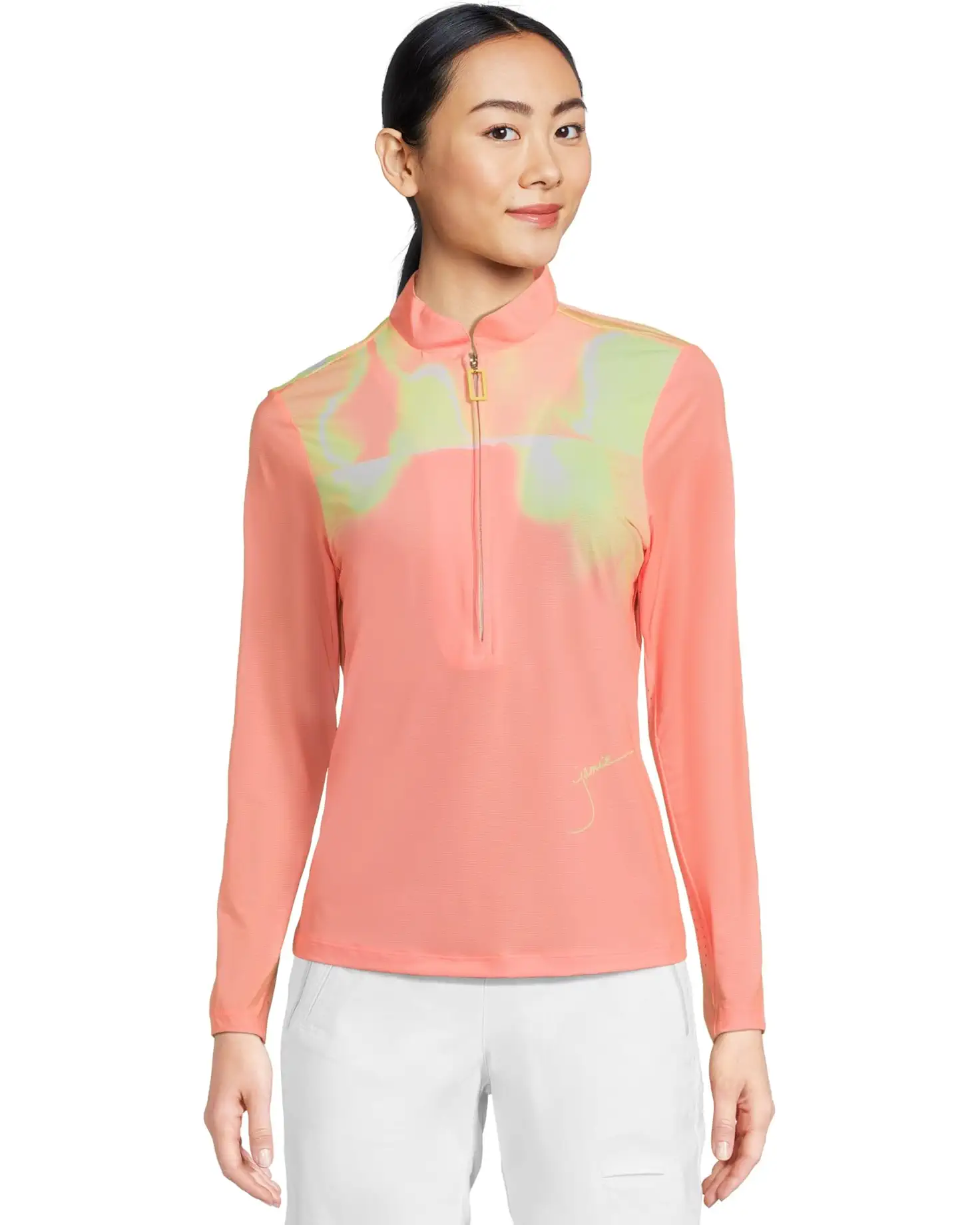 - The Jamie Sadock® Flare Print Long Sleeve Sunsense 1/4 Zip Top offers sun protection while keeping you perfectly stylish. The Flare print adds a dynamic, expressive touch, while the mandarin collar and quarter-zip neckline lend a polished, athletic silhouette.