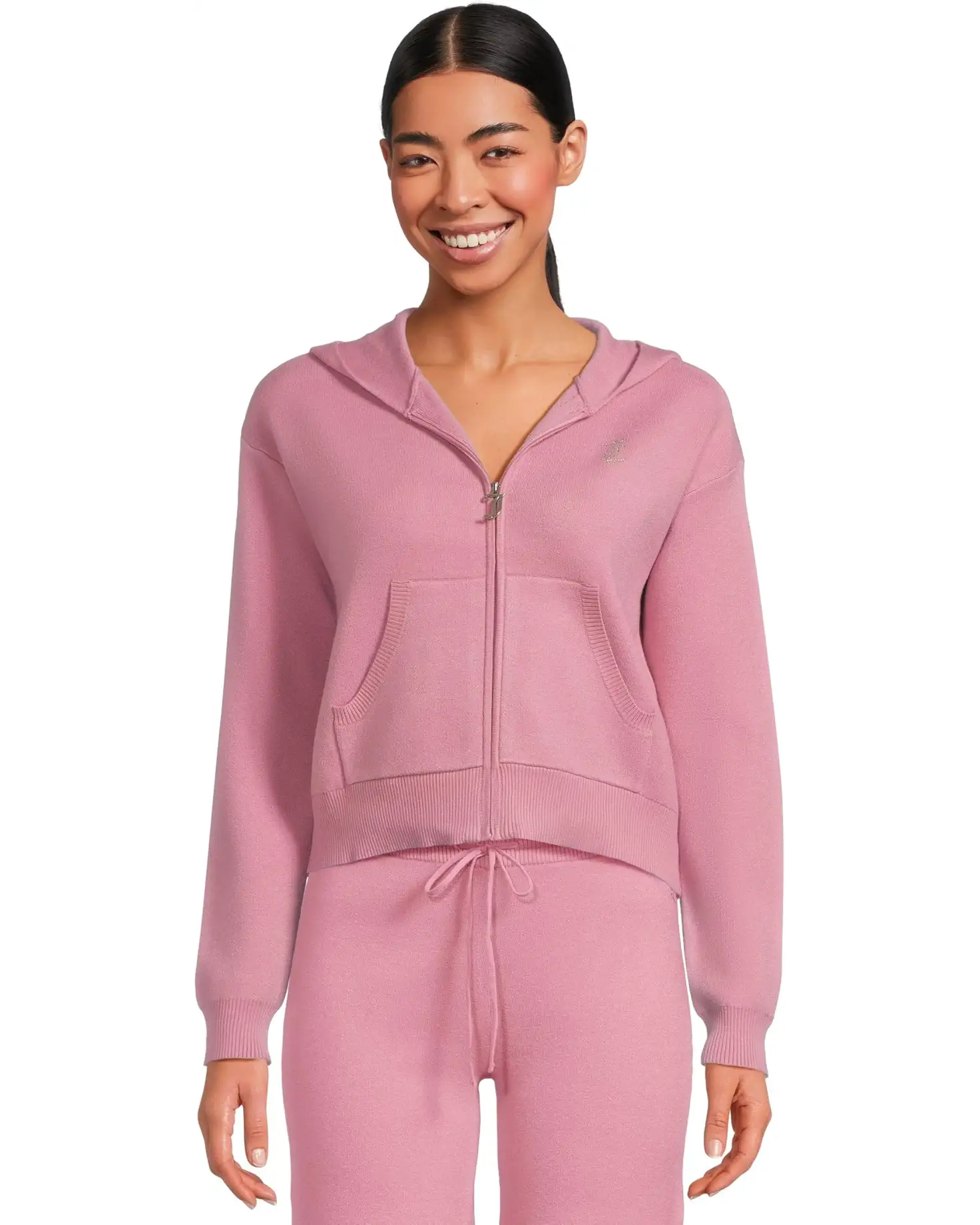 • Snuggle up in style choosing the Juicy Couture® Sweater Track Jacket! Crafted from a soft-knit material, this midweight jacket boasts a hooded neckline, long sleeves, and a zippered front closure for ultimate comfort. Complete with our iconic rhinestone logo on the left chest and back, this knit cropped jacket is sure to turn heads wherever you go.