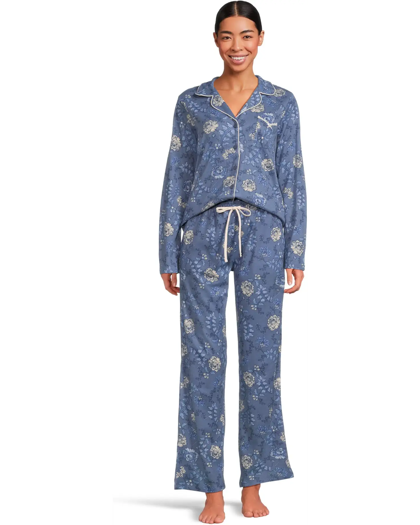 - Sweet dreams meet timeless charm wearing the Karen Neuburger® Blue Era Long Sleeve Girlfriend Pajama Set with Lace. Crafted in a classic fit with a chic notch lapel collar, this set is perfect for winding down in effortless style. The long-sleeve, button-down top features a chest pocket accented with a delicate lace bow detail, adding a soft, feminine touch. Functional chest and pant pockets keep bedtime essentials close, while the adjustable drawstring waist ensures a customized fit for all-night comfort. Thoughtful finishes like the notch collar and button front closure elevate its classic appeal, making it just as pretty for lounging as it is for sleeping.