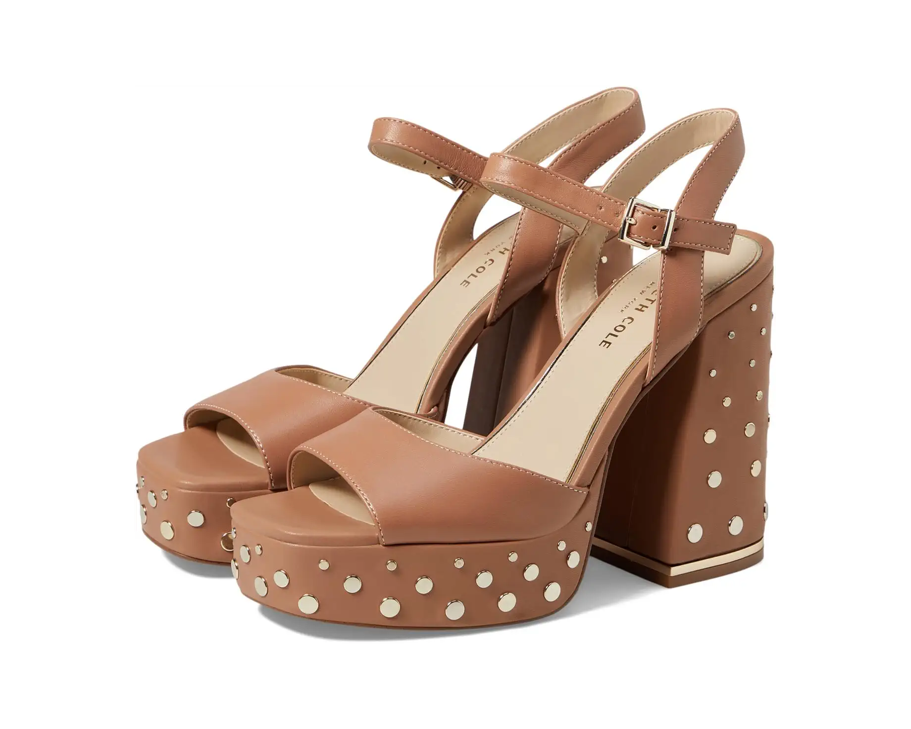 - Update your fashionable looks for an elegant walk to the party or dinner wearing Kenneth Cole® New York Dolly Studs sandal. It features open toe, buckle ankle closure, cushioned insole, and gold-tone trim at heel. A stud detail on the high platform offers a dazzling look. The sandal is crafted from leather upper, faux leather insole, and faux leather lining; making it comfortable for walking anywhere.