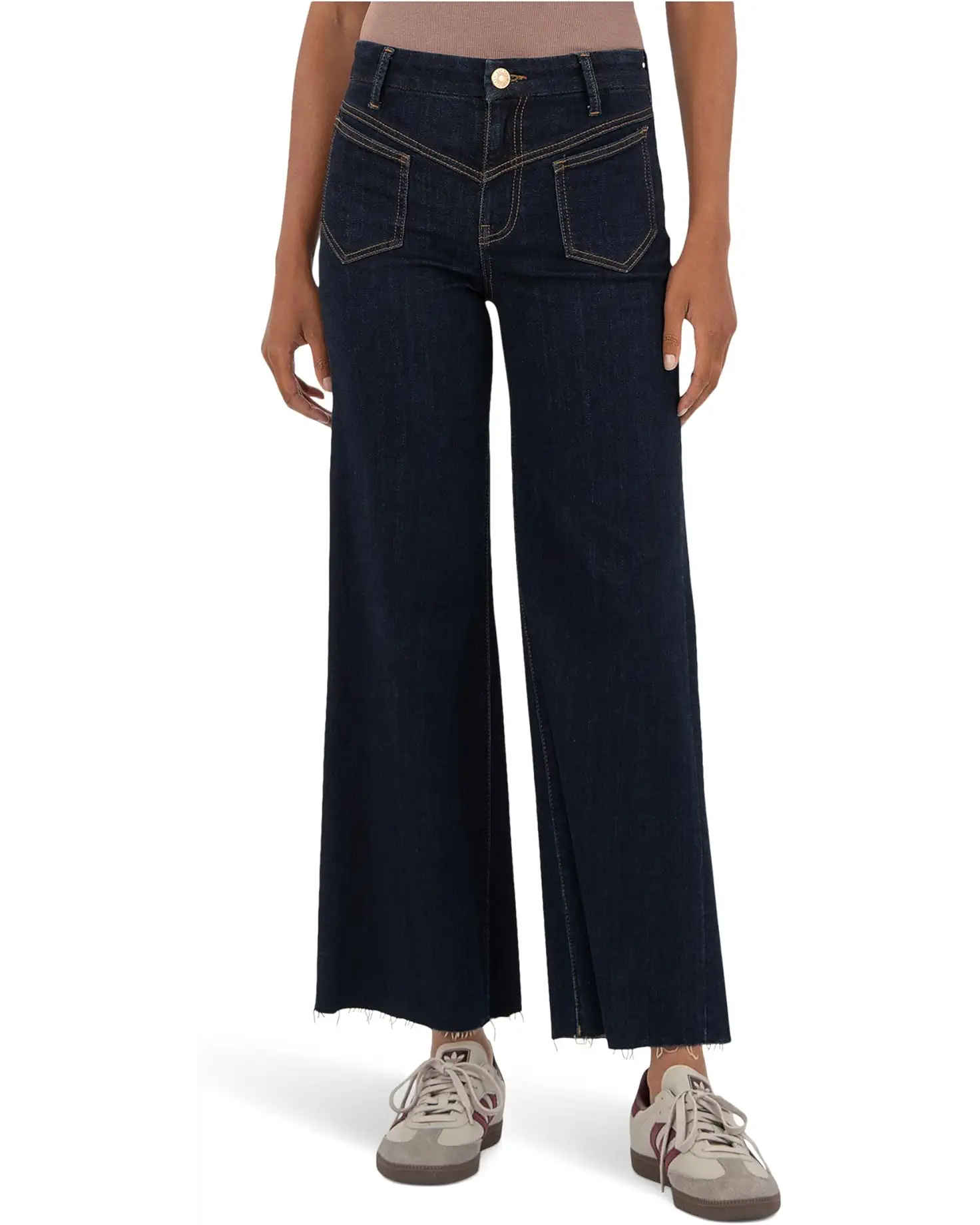 - A casual classic, these KUT from the Kloth™ Charlotte High-rise Wide Front Seam Leg Raw Hem In Sustain jeans complement your figure with soft, denim that comfortably shapes every body type. Complete with a high-rise waist with belt loops, zip-fly, and button closure.