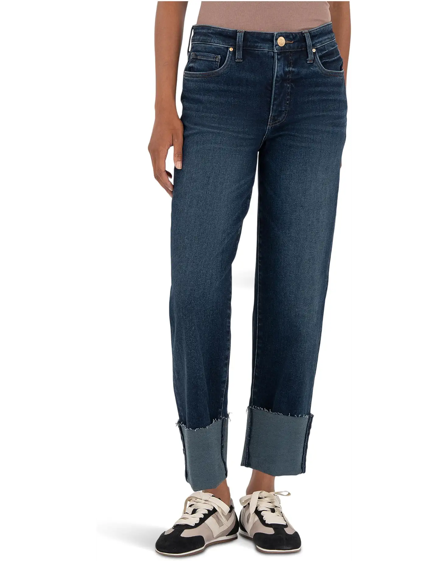 - Step up the fashion game by complementing tees and tops with KUT from the Kloth™ Fay High Rise Fab Ab Straight Leg-roll Up Raw Hem Jeans. The pull-on style jeans features a high-rise waist with belt loops, a zip-fly & button closure, a five-pocket design, and a wide-leg style with rolled-up hem.