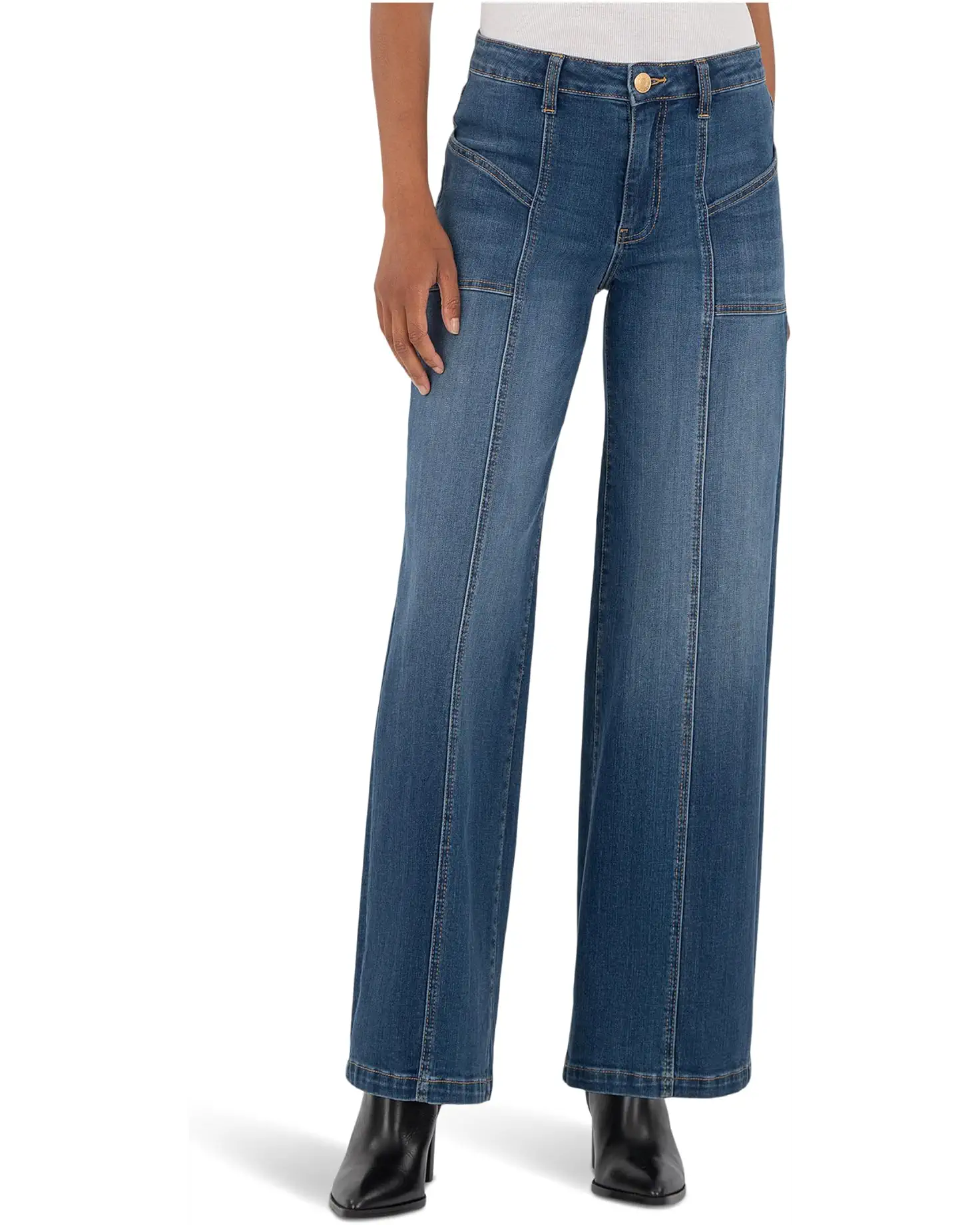 Petite Jean High Rise Wide Front Seam Patch Front Pockets
