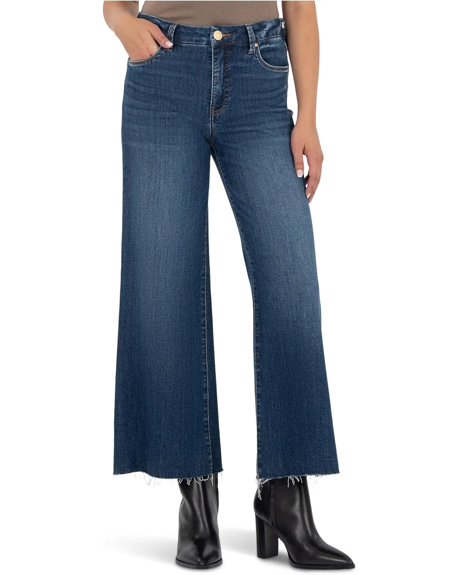 Petite Meg High Rise Fab Ab Wide Leg Raw Hem
