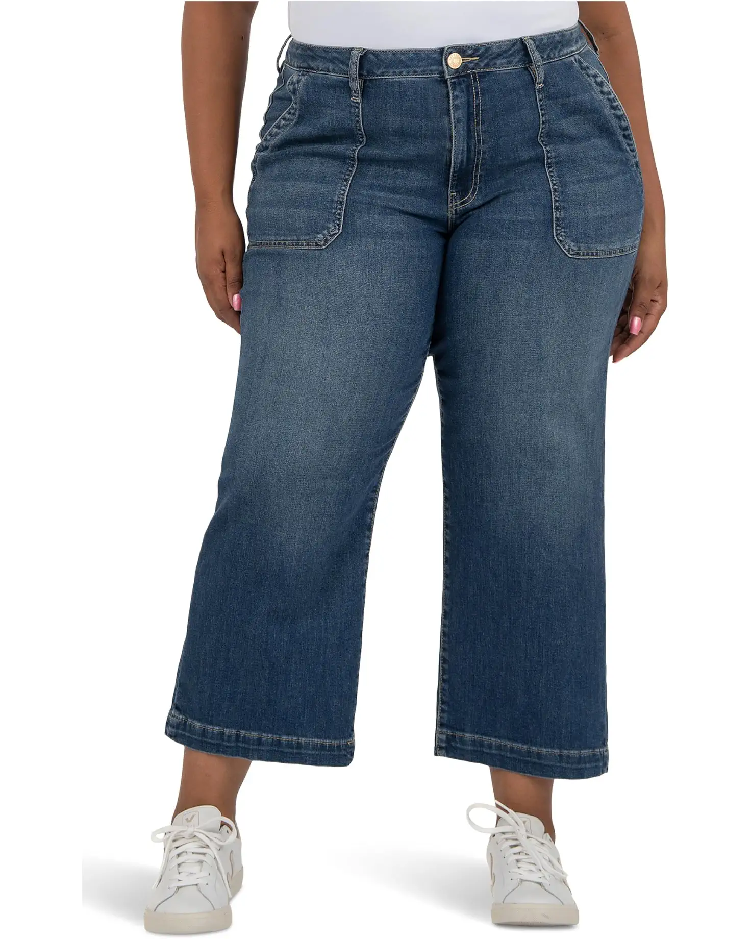 - A casual classic, these wide-leg jeans complement your figure with soft, denim that comfortably shapes every body type. Featuring a front button closure with a zip-fly, belt loop waist, porkchop hand pockets, back patch pockets, and a regular fit.