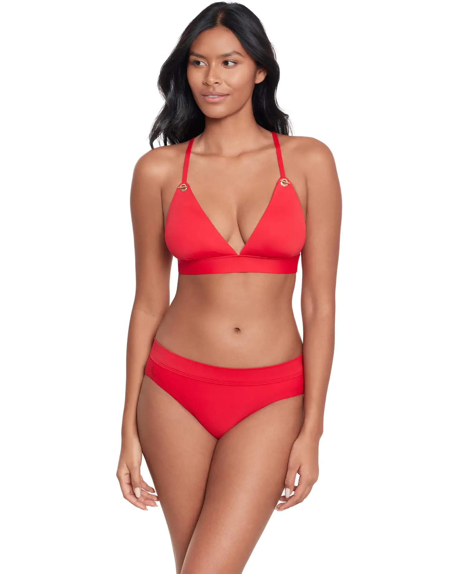 - Instantly elevate your beach look by wearing the iconic LAUREN Ralph Lauren® Beach Club Solids Toggle V Neck Bikini Top. It has an attractive V-neckline over the shoulder top with gold logo grommets and toggles. The top has adjustable spaghetti straps for custom fitting along with removable soft cups. The sleeveless bikini top has a convenient hook and bar closure too.