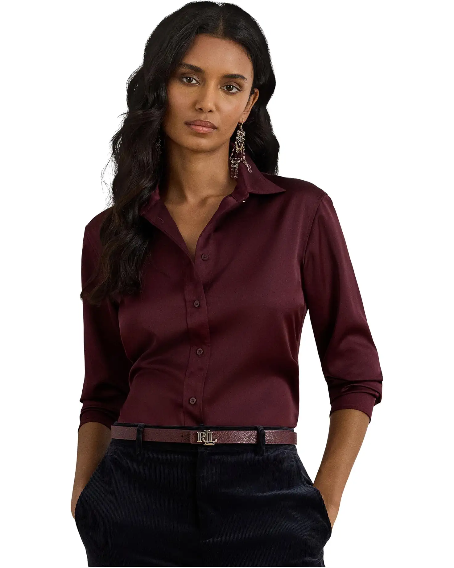 - Whether you're dressing up for work or a business meeting, the LAUREN Ralph Lauren® Classic Fit Satin Charmeuse Shirt is a great choice. The buttoned front placket with signature engraved pearlized buttons offers easy wear. This timeless shirt is crafted with glossy satin charmeuse for a luxurious Lauren look. The long sleeves with buttoned barrel cuffs, point collar, and a shirttail hem add to its style. Stay chic and comfortable all day wearing this satin shirt. Perfect for elevating your next special occasion look or as a thoughtful holiday gift.