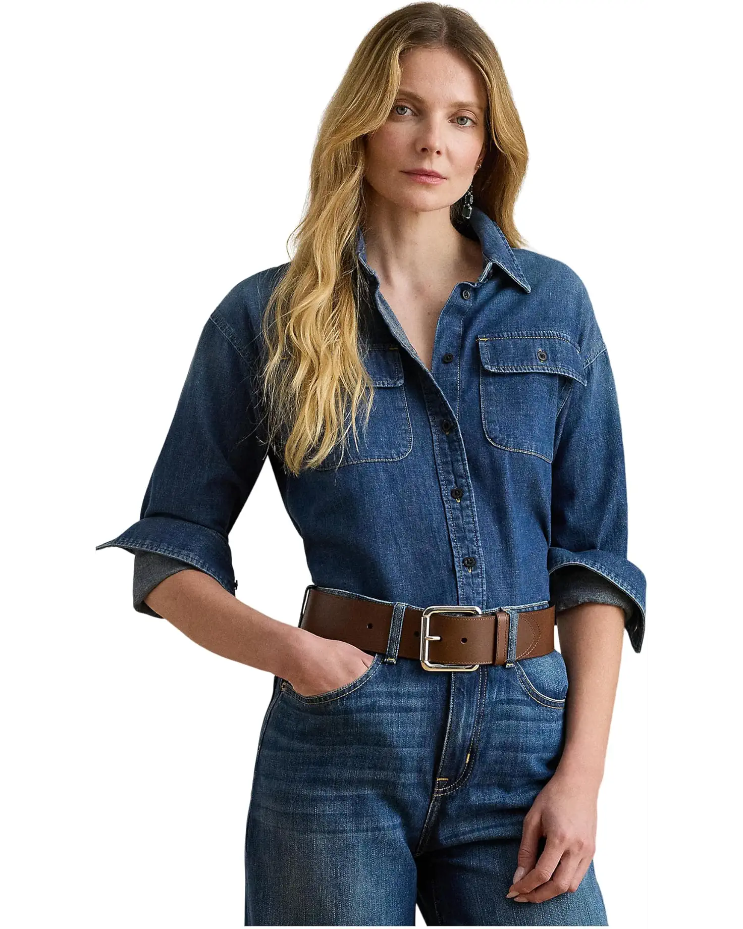 - In right-hand cotton twill, this trim-fitting, dark-dyed LAUREN Ralph Lauren® Denim Shirt is a timeless go-to. Patch pockets on the chest provide the perfect finishing touch.