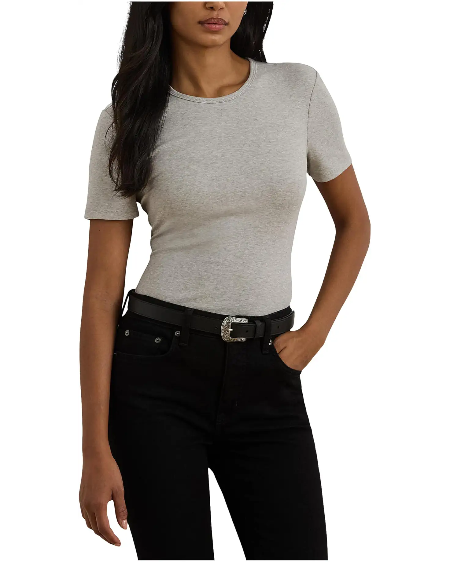 - Rib-knit with soft, breathable stretch cotton, the Lauren Ralph Lauren® Stretch Cotton Crew Neck Tee promises lasting comfort as a casual dressing staple. The pull-on style tee features a ribbed crewneck, short sleeves, and a straight hem with "LRL"-embroidered logo at the front right side.