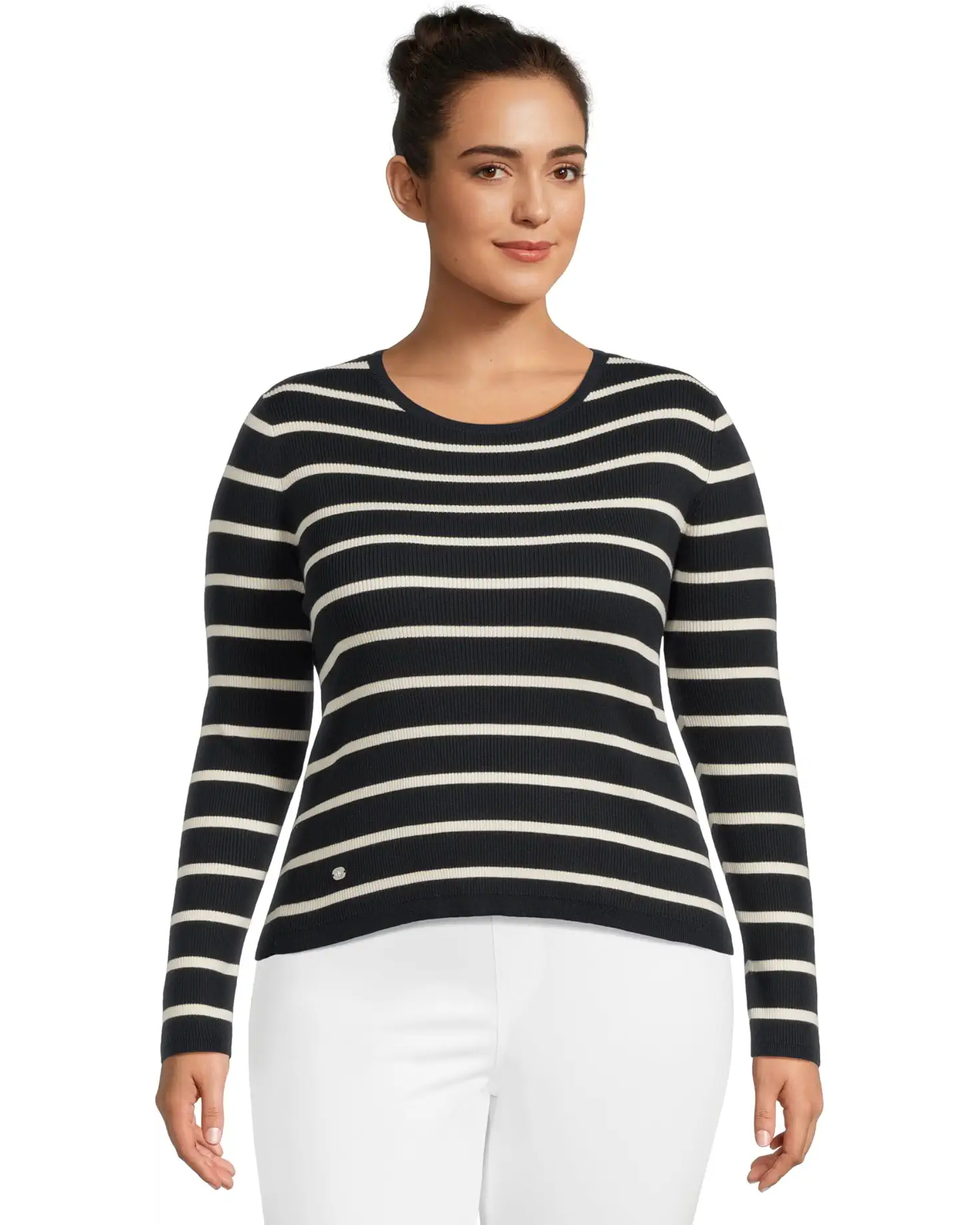 - Featuring a rib-knit construction and horizontal stripes, the cotton-blend Lauren Ralph Lauren® Striped Rib-Knit Crew Neck Sweater will never go out of style. The pullover-style sweater features a ribbed crew neck, long sleeves with ribbed cuffs, and a straight hem with a metal plaque custom-developed with an "LRL" logo at the front right hem.