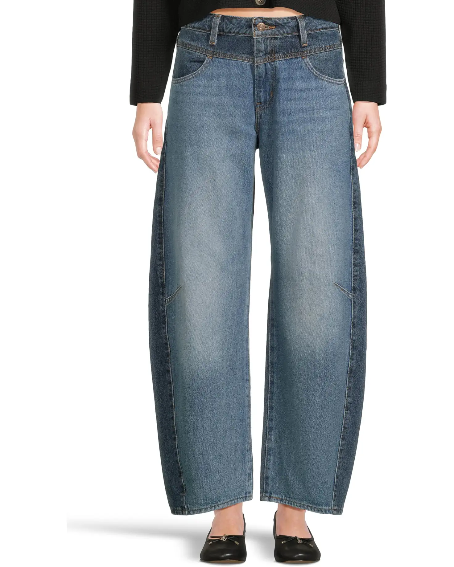 - There's a new western in town, the Levi's® Premium Barrel Saddle Back jeans feel classic yet modern with a mid-rise and a loose fit. They're relaxed yet flattering with extra room for a subtle edge. Cut with a baggy fit, these denim jeans feature a barrel leg silhouette and are finished with contrast denim detailing. Their zip-fly, buttoned closure, and belt loops add to their style and functionality. Made from cotton fabric, these mid-rise jeans are your go-to western jeans.