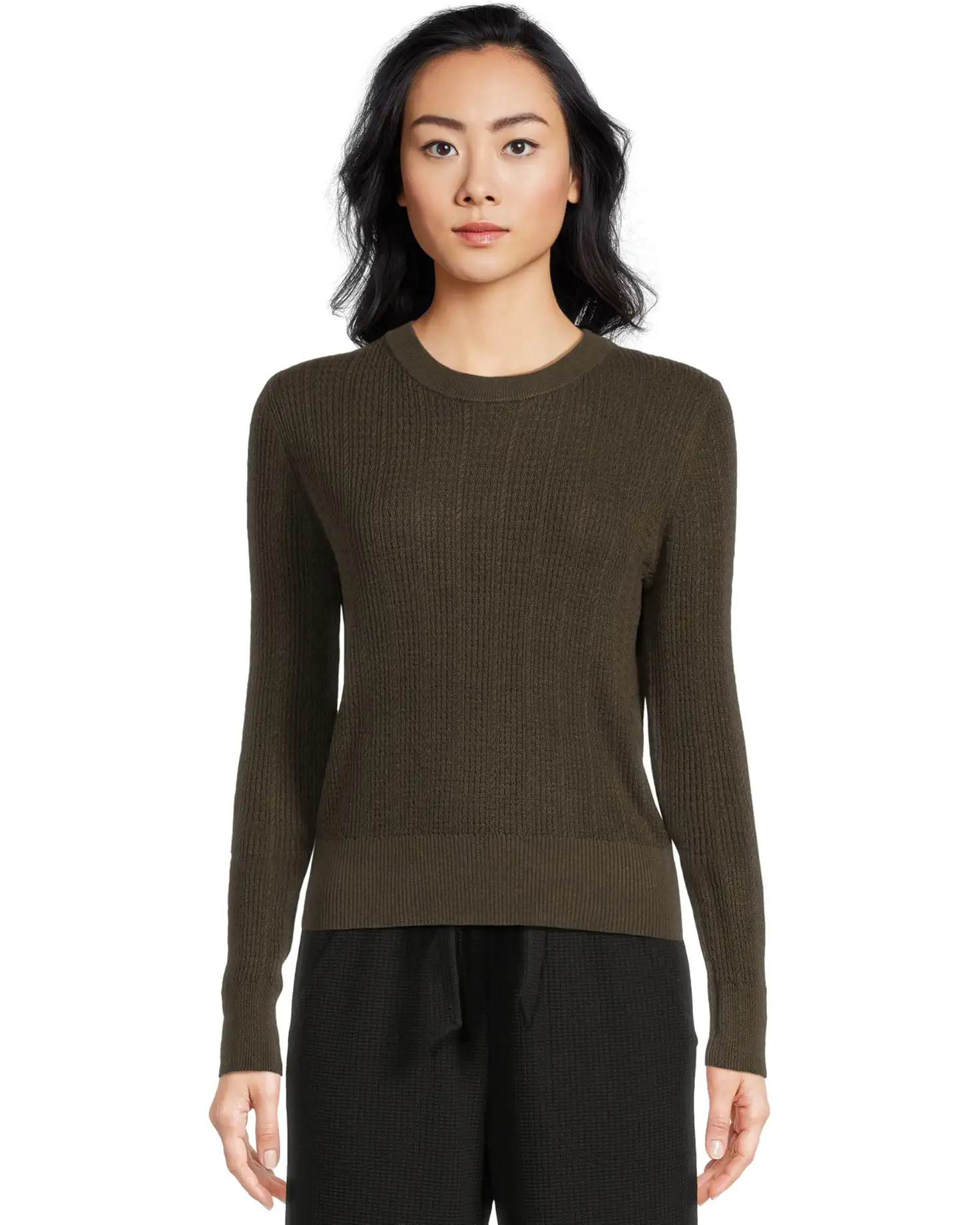 • The Multi Stitch Pullover Sweater in a Cotton Modal blend yarn is knit with tiny cables and intricate stitch details, making it an effortlessly chic update to the classic crewneck. Designed with smaller proportions for a modern look, this versatile style pairs effortlessly with everything from denim to skirts. A go-to piece for this season and beyond, it's the perfect blend of comfort and refined style.