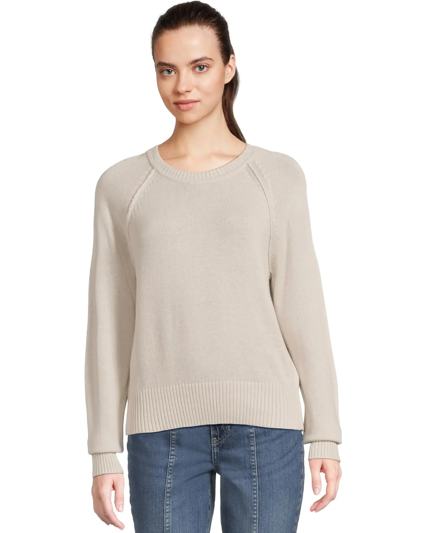 - The Lilla P® Raglan Sleeve Pullover is knit in a breathable cotton blend, with just a touch of cashmere, for an easy-to-wear midweight sweater. Designed with a classic crew neckline and a banded bottom, this pullover-style sweater gently draws in to create a flattering blouson fit. Exposed seams along the raglan sleeves add thoughtful detail, giving this everyday staple a modern edge. With just enough room through the body for comfort and a slightly shorter length, the proportions are perfectly on trend. Pair it with the coordinating knit skirt for a chic head-to-toe look or wear it with denim for effortless style.