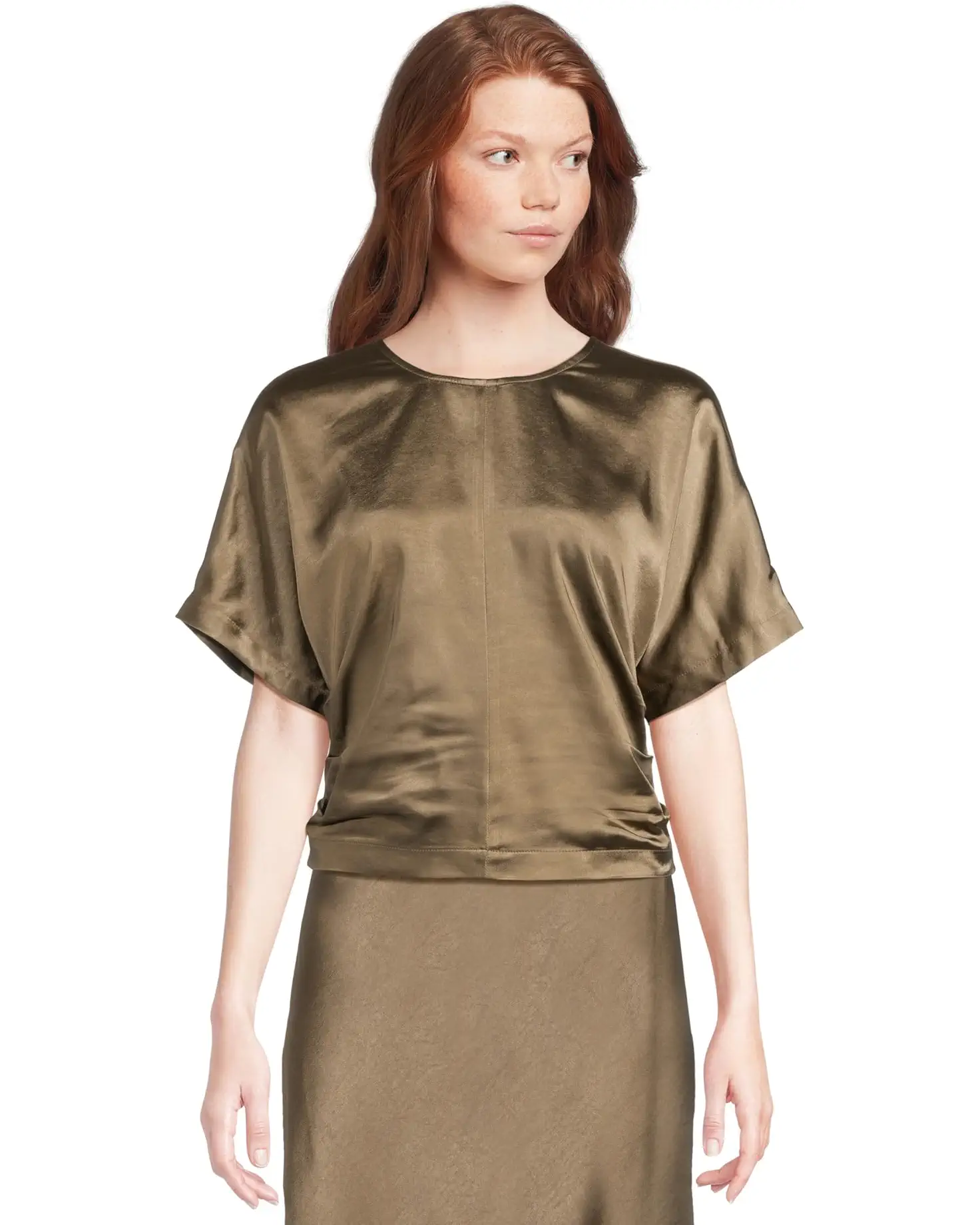 • Complement your chic style in the Lilla P™ Satin Dolman Short Sleeve. This pull-on style top offers a round neckline with short dolman sleeves and a straight hemline. Pair it perfectly with your favorite denim, pants or skirt and heels for a flawless look!