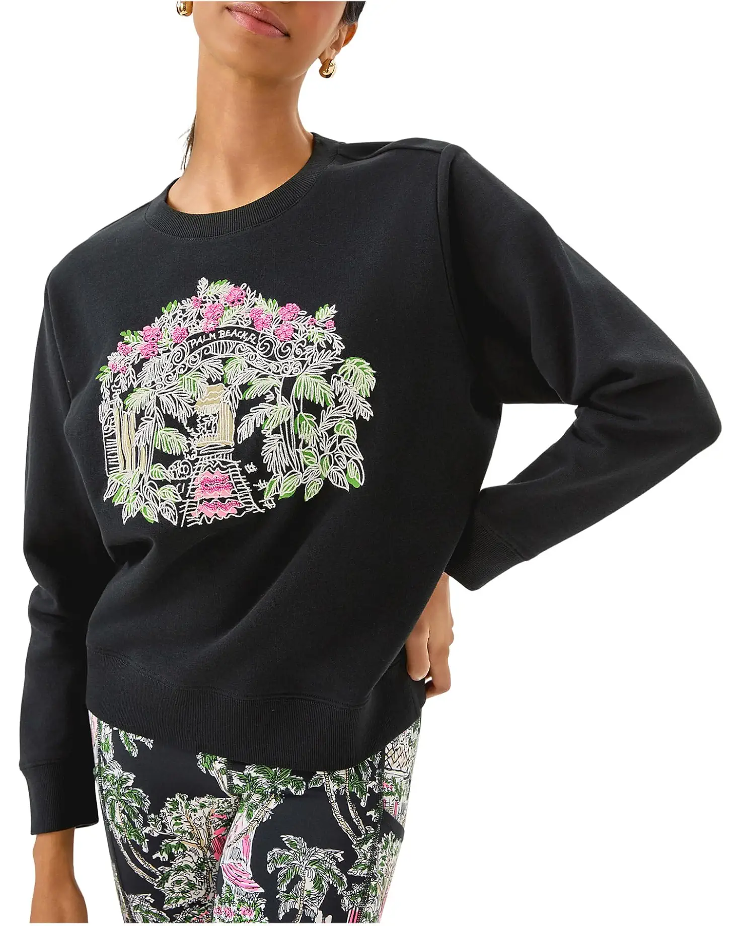 • Take your casual style statement a notch higher and keep yourself warm un the Lilly Pulitzer® Ballad Long Sleeve Sweatshirt. The oversized sweatshirt features a ribbed crew neckline, long sleeves, and ribbed sleeve cuffs & hem band. The custom front artwork adds a subtle touch of style to your look.