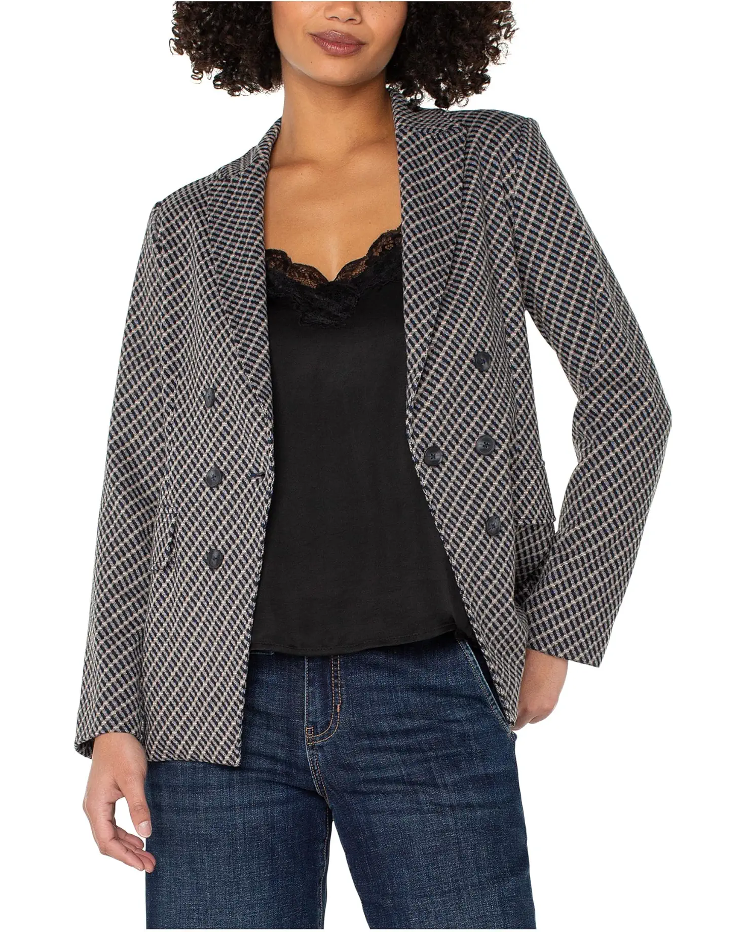 - Crafted from a modern check knit Jacquard fabric, the Liverpool™ Los Angeles Knit Jacquard Faux Double Breasted Blazer is the perfect blend of sophistication and comfort. Whether you're strolling through the city or enjoying a dinner out, this versatile blazer is a must-have addition to your wardrobe.