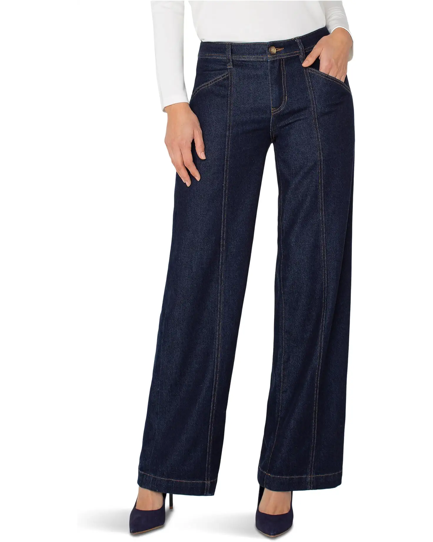 - The Liverpool™ Los Angeles Mid-Rise Trouser Wide Leg With Seaming 32" Inseam redefines comfort and polish in one sleek silhouette. Designed with a regular fit and mid-rise waist, this modern take on the brand's popular denim trousers now flaunts a chic wide-leg design for effortlessly elongating appeal. Complete with zip-fly and button closure, belt loops, and four functional pockets, it's all about versatile styling with no compromise on ease. Pull-on comfort meets timeless tailoring, perfect to pair with a blazer for a power look or a tee and sneakers for elevated off-duty vibes.