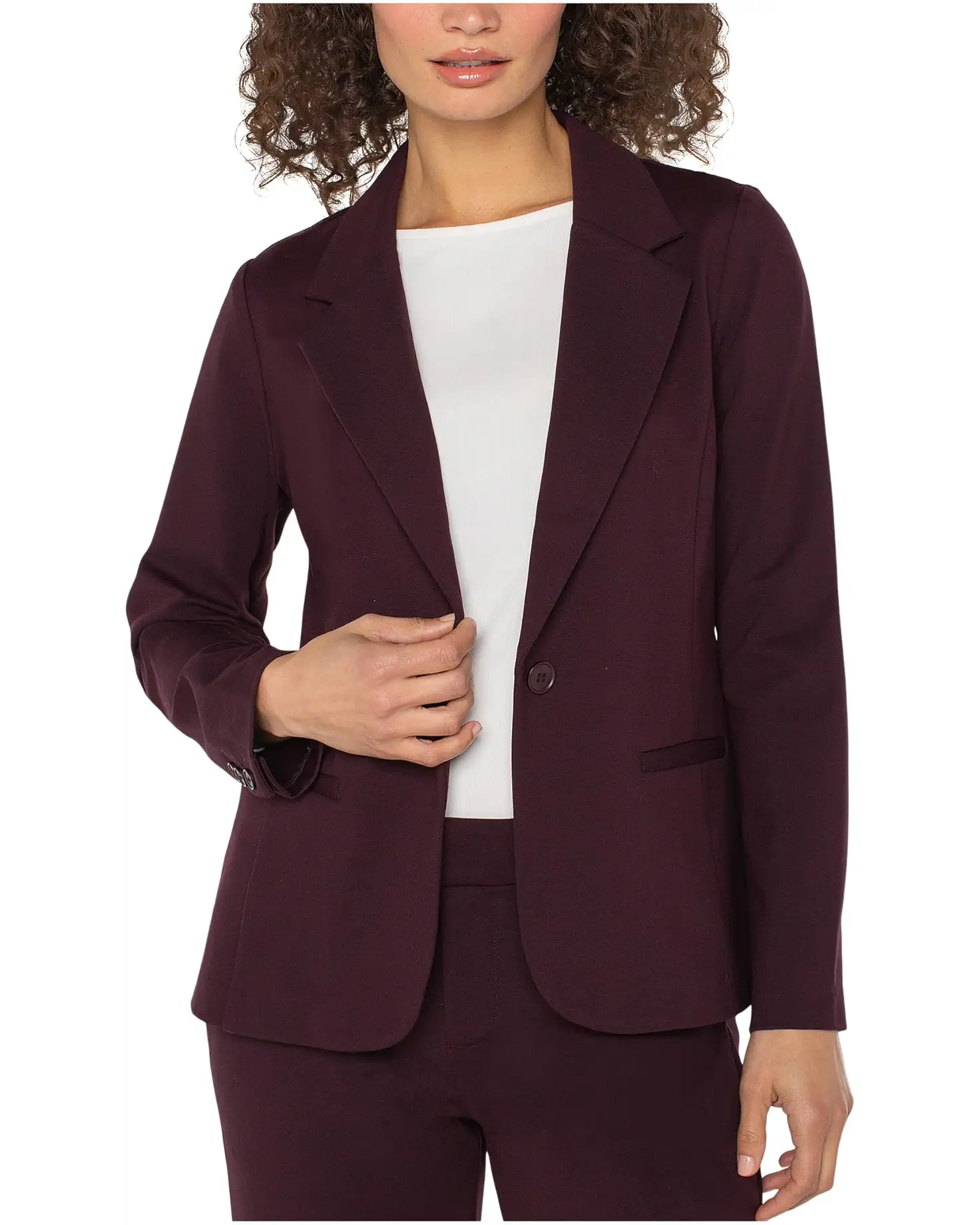 - Transform your look, instantly styling Liverpool™ Los Angeles Super Stretch Ponte Fitted Blazer. With a sleek notch lapel collar, tailored regular fit, and long sleeves, this one-button wonder brings timeless sophistication with a modern edge. Front patch pockets add function to the fashion-forward silhouette, while the super-stretch ponte knit ensures day-to-night comfort without compromising style.