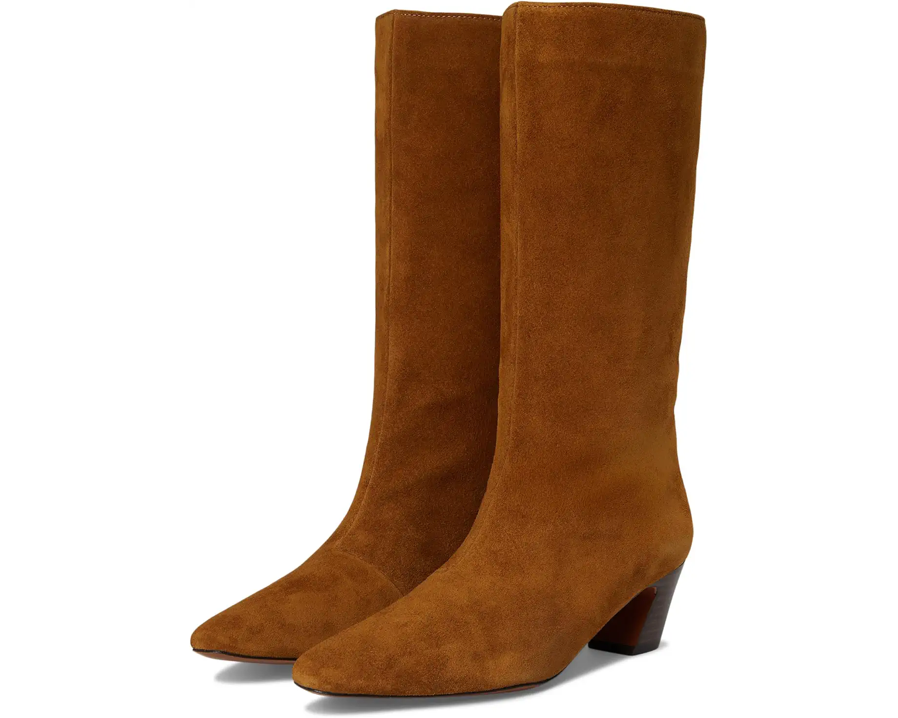 - Designed with a padded footbed, pointed toe shape, and pull-on closure, the Loeffler Randall® Cleo Kicked Heel Calf Boot looks stunning. The allover leopard printed suede upper and leather lining adds long-lasting comfort.