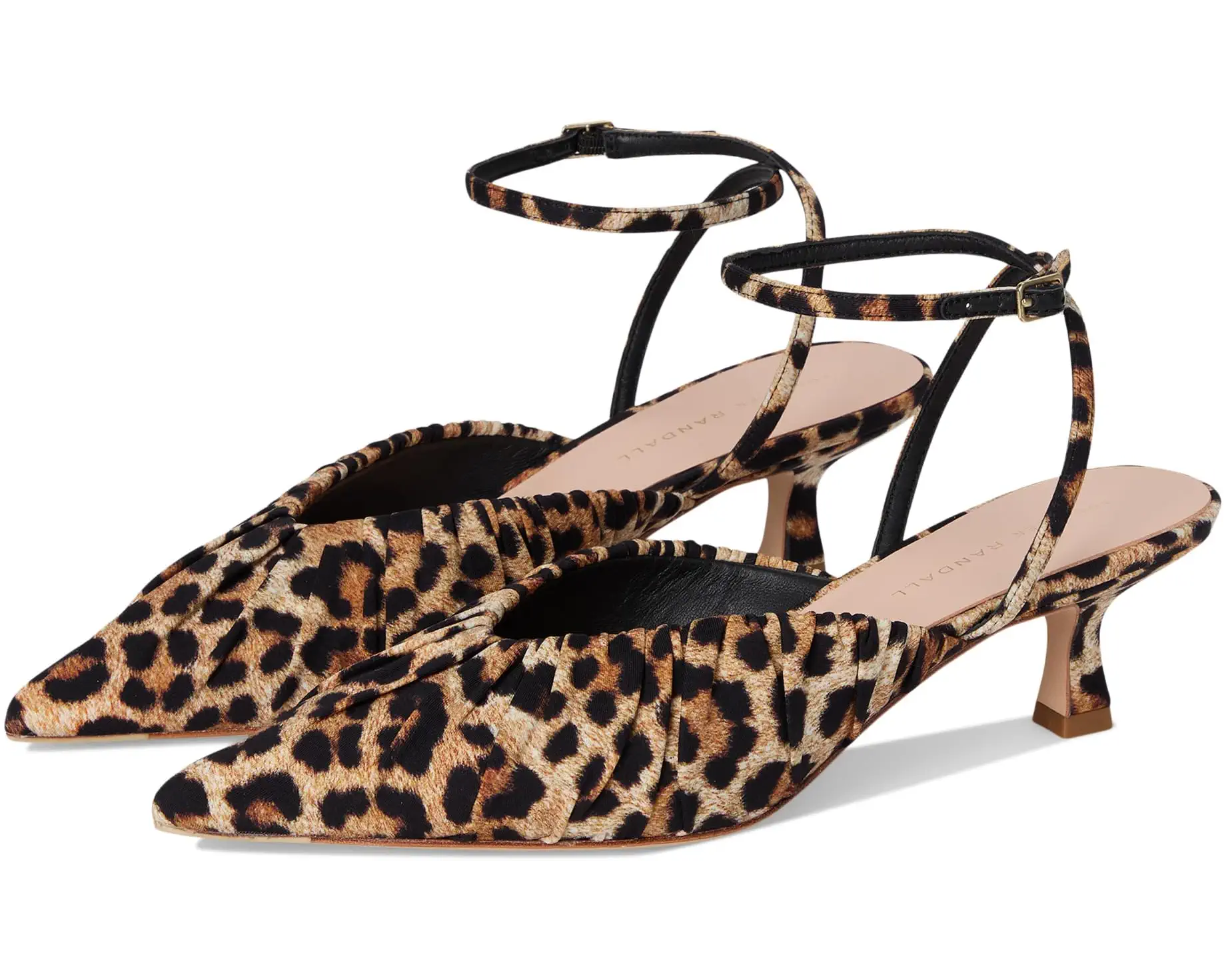 • Slip into the Loeffler Randall® Rio Smocked Kitten Heels for a sophisticated and stylish look this season! Made with viscose and silk upper, these kitten heel sandals are both elegant and comfortable. The breathable leather lining and insole keep your feet feeling fresh, while the pointed toe design adds a touch of refinement to any outfit. Featuring a gathered fabric design and a buckle closure, these sandals are perfect for any occasion. And with a padded footbed adorned with a gold-stamped logo, you'll be stepping out in style all day long.