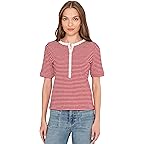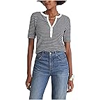 • A beautiful allover striped print and classic silhouette, make the Madewell® Elbow Sleeve Henley Top a wardrobe essential. The pull-on style top features a henley neck with half-button closure, short sleeves, and a straight hem.