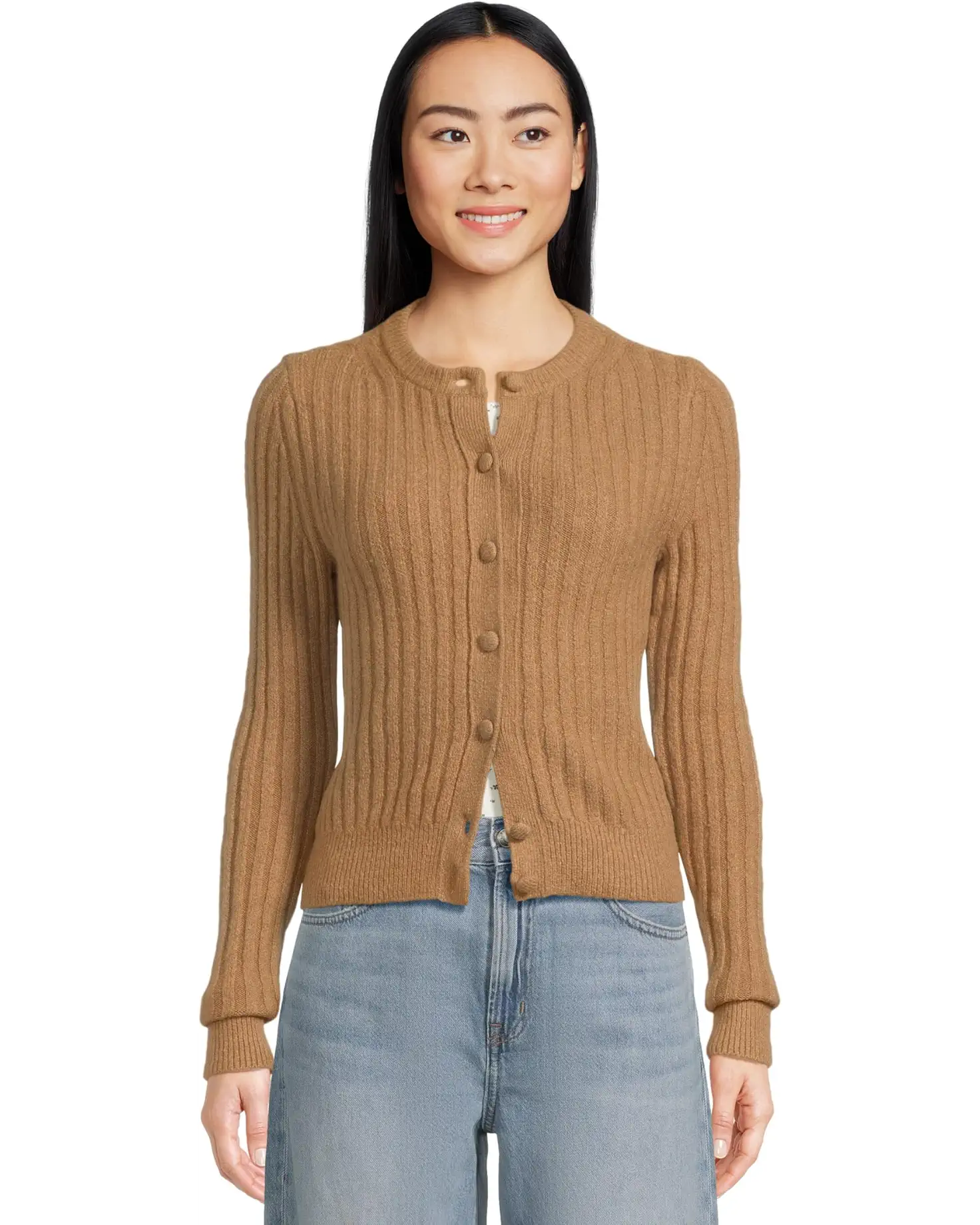 - With its covered buttons, the chic Madewell® Long Sleeve Cozy Cotton Ribbed Cardigan is the perfect addition to your effortless style. Featuring a crew neckline with long sleeves and a fitted silhouette.