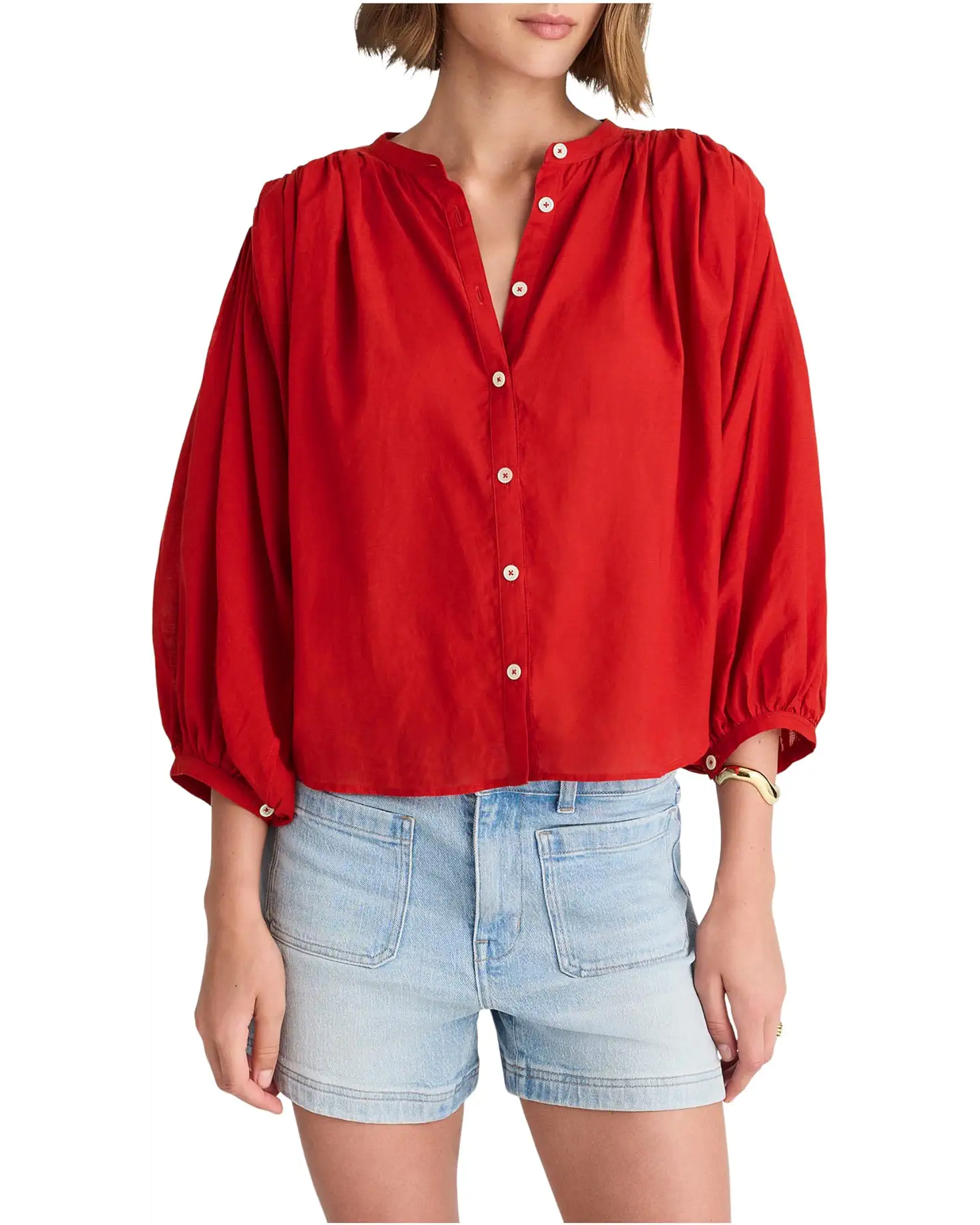 • Effortlessly chic, timelessly cool, and made for everyday wear, the Madewell® Shirred Crewneck Button-up Top is the wardrobe hero you've been waiting for. Designed in a flattering regular fit, this top combines laid-back polish with subtle detailing that makes it stand out. The shirred crew neck brings a touch of texture and elegance, while the quarter sleeves strike the perfect balance between casual ease and refined charm. Its button-front closure offers versatility, letting you style it open over a tank, layered under a jacket, or buttoned up for a polished finish.