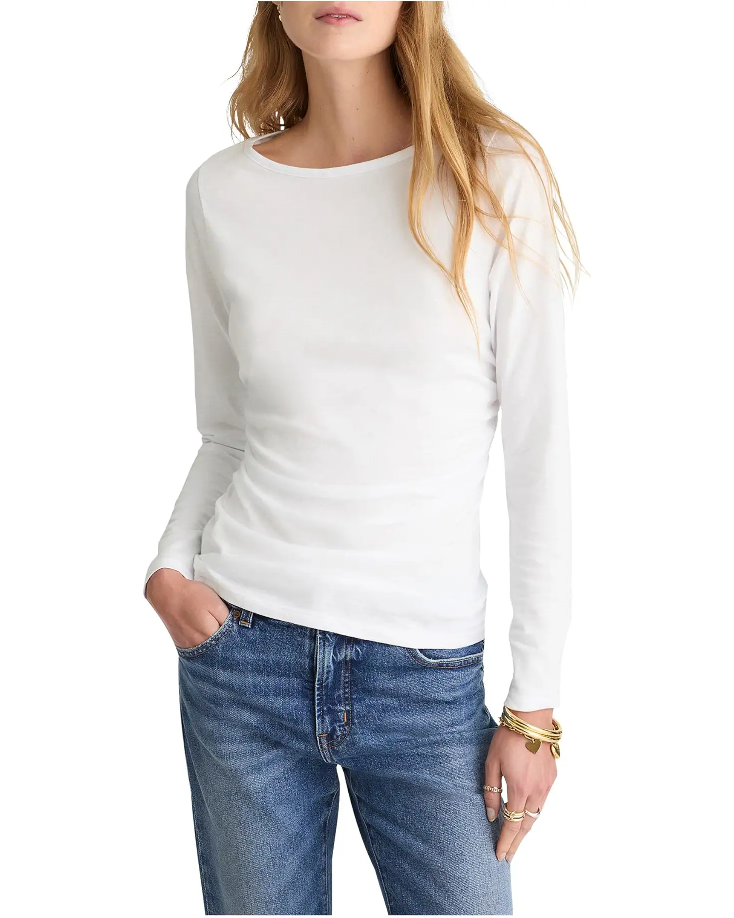 - Casual and chic. Find the perfect layer of cozy comfort in the Madewell® Side Ruched Slub Long Sleeve. This pull-on style top features a crew neckline with long sleeves, side ruched detailing and a straight hemline.