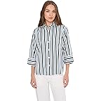 • Style and comfort blend together in the Madewell® Y Neck Shirt With Adjustable Sleeve, adorned with allover printed stripes. The shirt features a Y-collared neck, long adjustable sleeves, full button-front closure, a patch pocket at the left chest, and slightly curved hem.